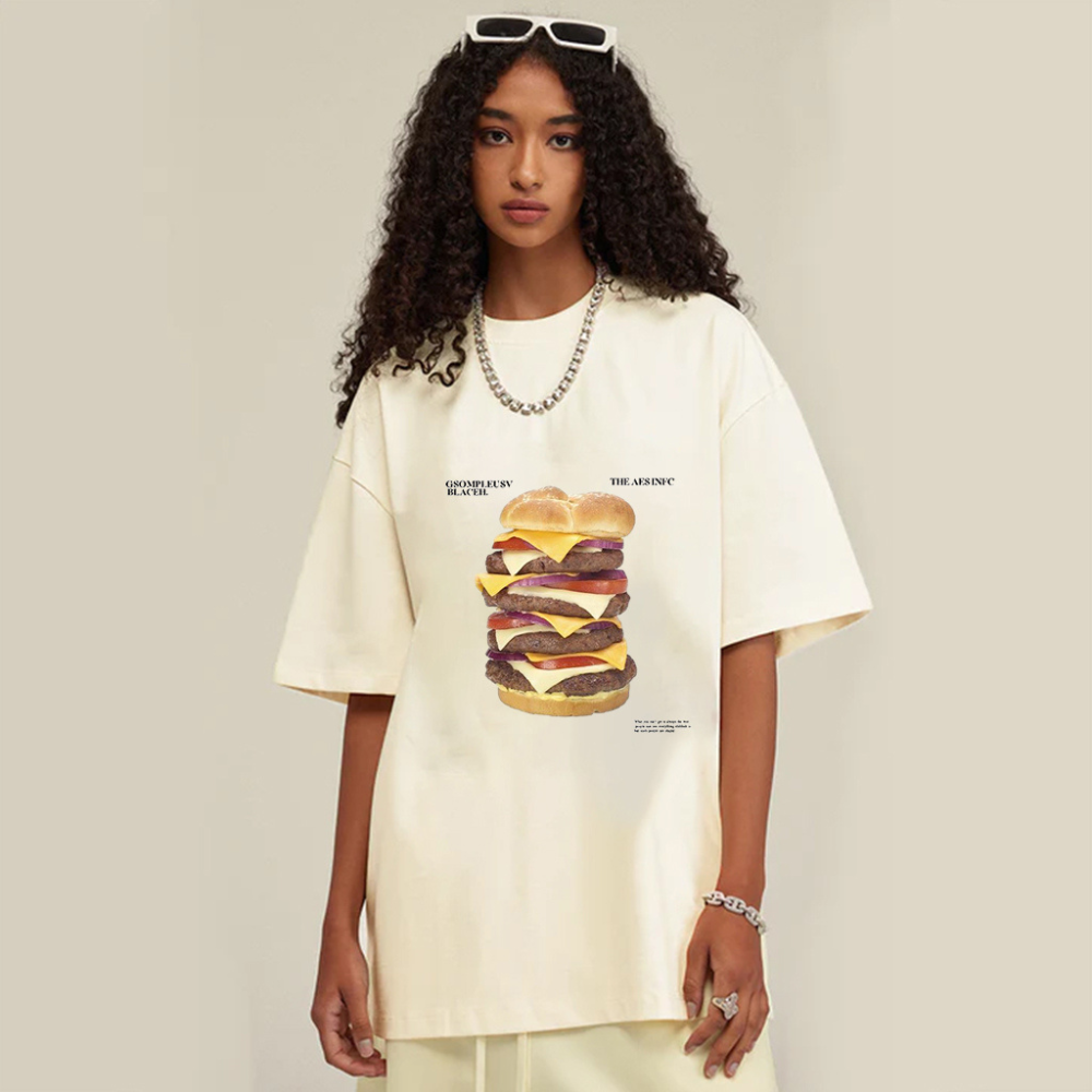 Our Cheeseburger T-shirt is not just a piece of clothing, it's a statement. It showcases your love for delicious food and your sense of style. Whether you're out for a casual lunch or a night out with friends, this tee will add a fun and playful touch to your outfit.