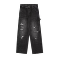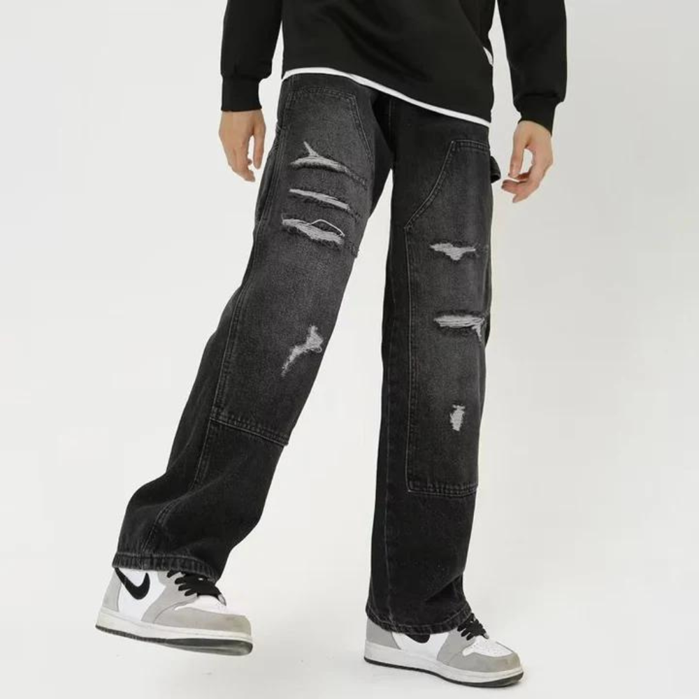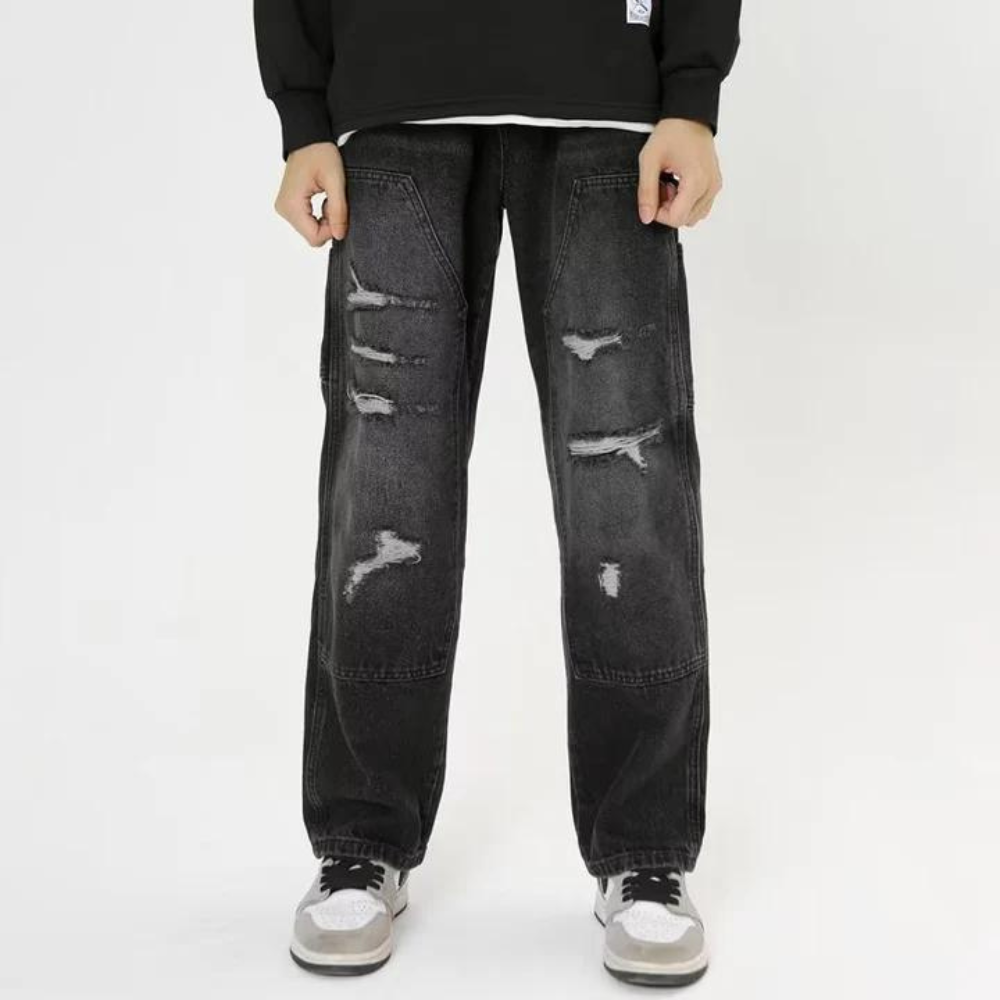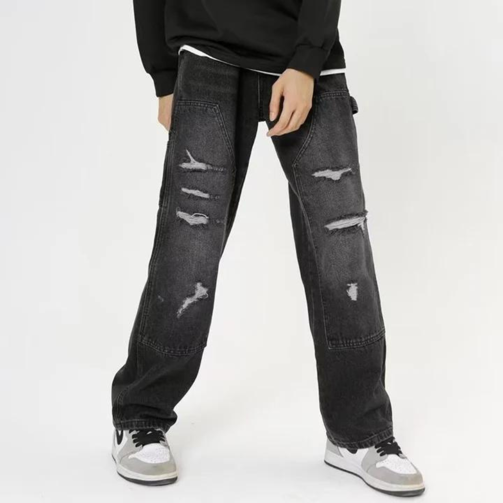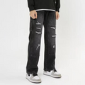 Crafted from high-quality black denim, these jeans feature a straight leg fit that flatters all body types. The ripped detailing adds a touch of edginess to the classic design, making them a versatile piece that can be dressed up or down.