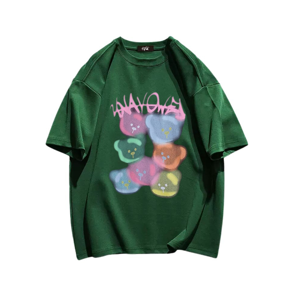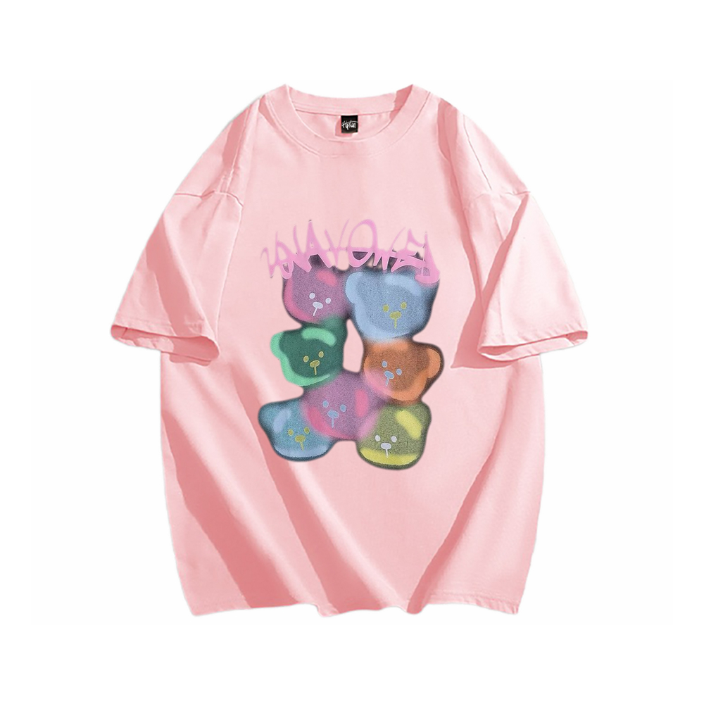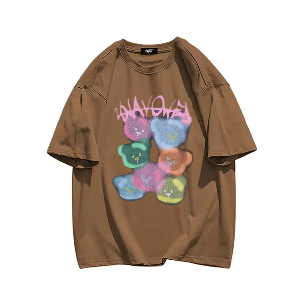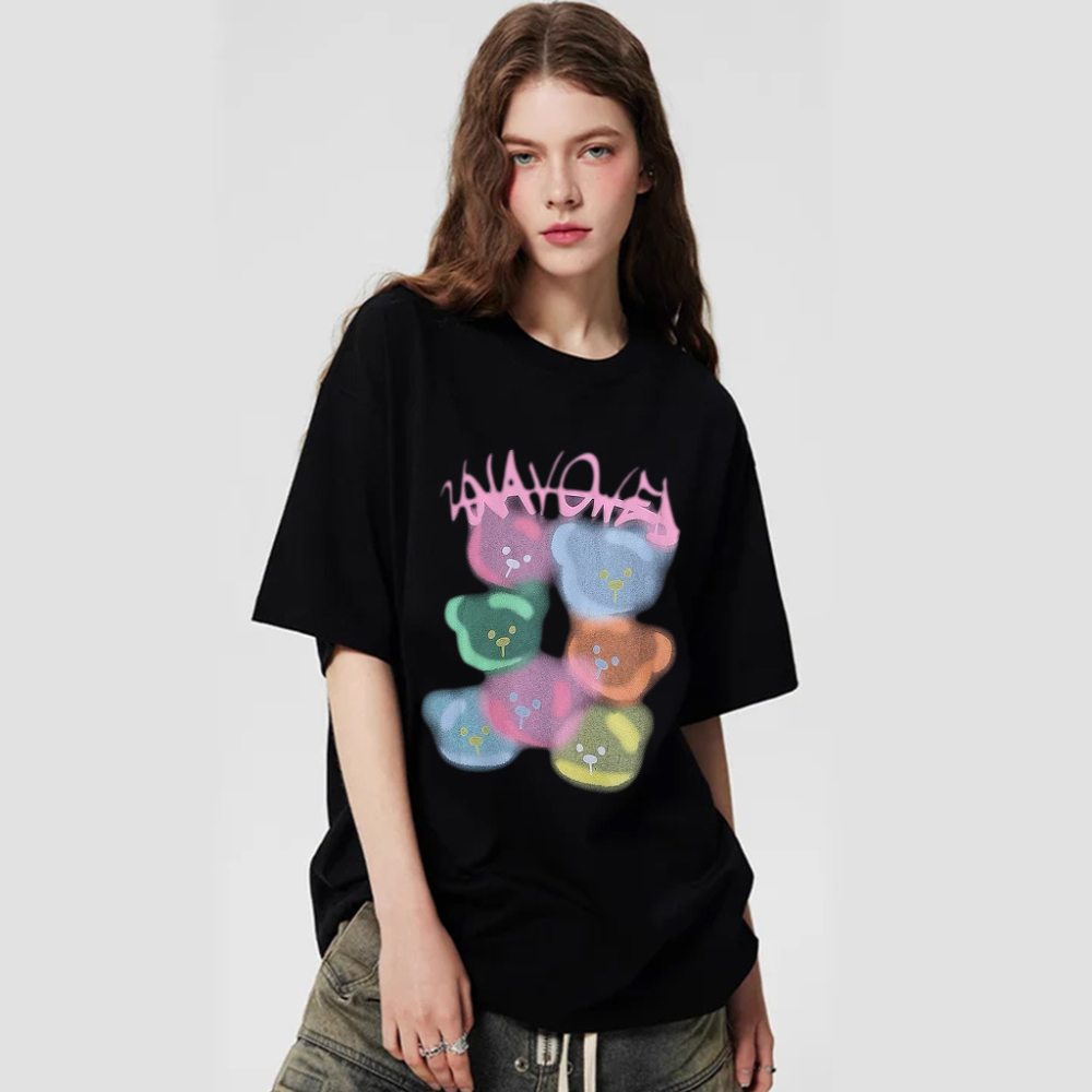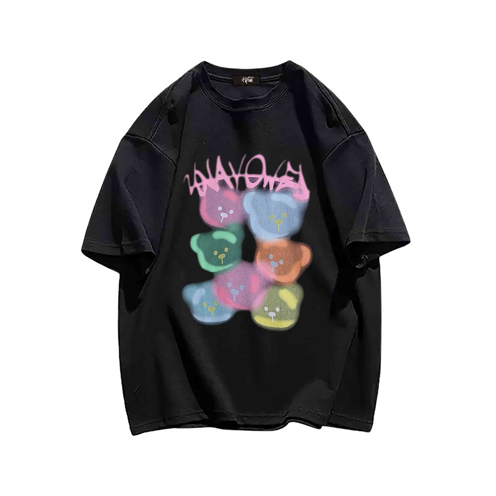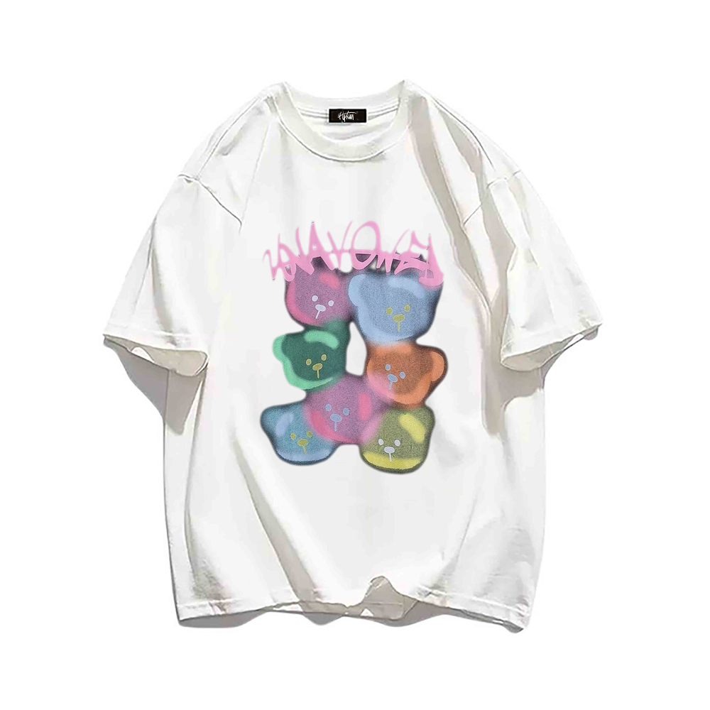 Whether you're heading to a casual outing or just lounging at home, this t-shirt is versatile and can be styled in many ways. Pair it with your favorite jeans for a laid-back look or dress it up with a skirt for a more trendy and chic outfit. The possibilities are endless with our Colorful Bubble Bear T-shirt.