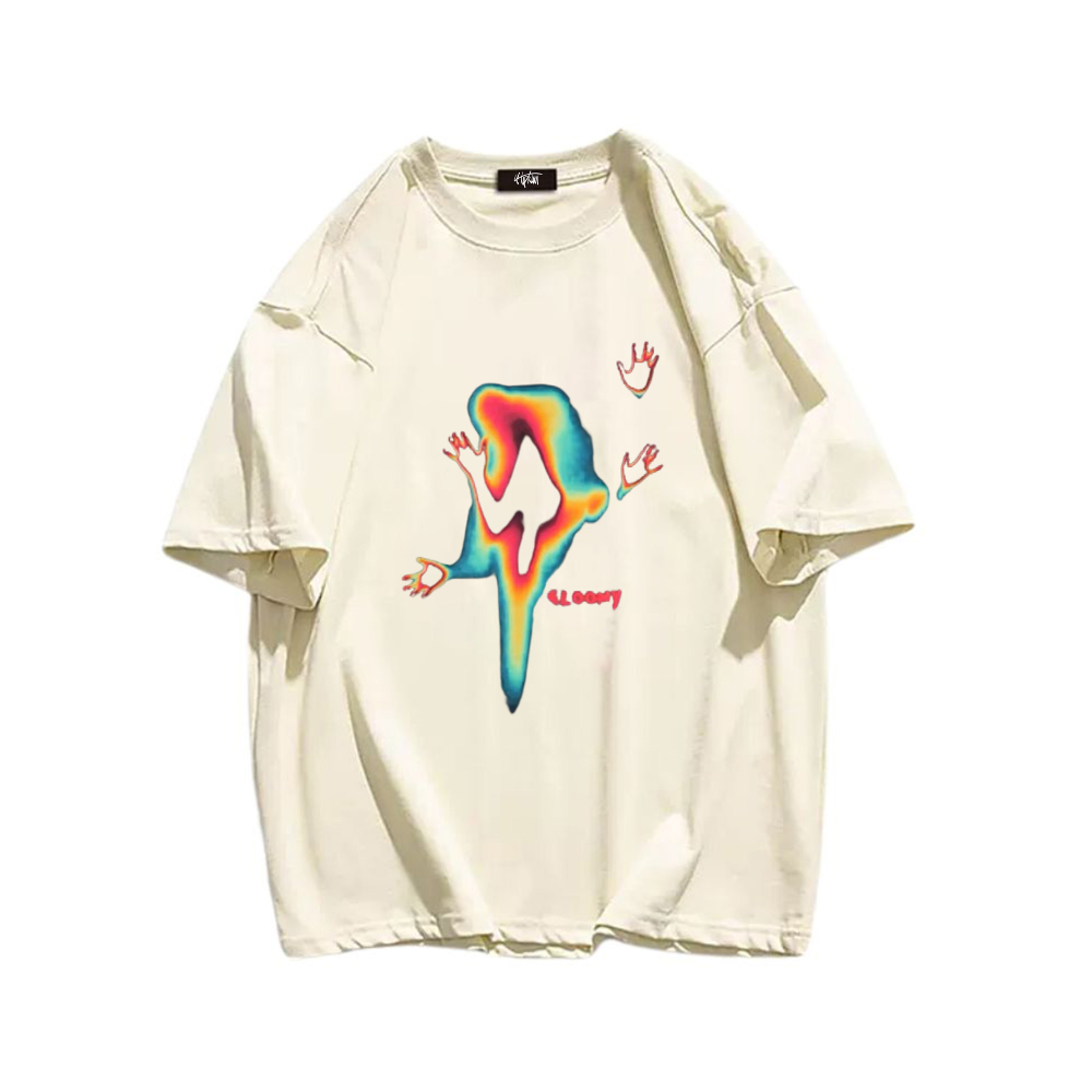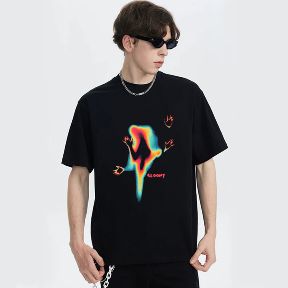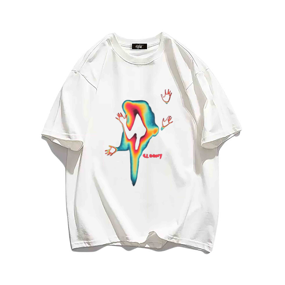 Perfect for any casual occasion, this t-shirt is a must-have for those who love to stand out and make a statement with their fashion choices. The colorful ghost doodle design adds a fun and quirky touch to any outfit, making it a great conversation starter.