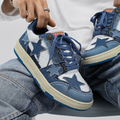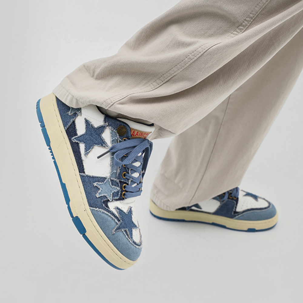 Enhance your wardrobe with the HipKiwi Star Denim Retro Star Element Sneakers. These shoes blend sophistication and style, with a unique twist from the contrasting rolled wheat ear pattern. Crafted for luxury, the attractive and fashionable sneaker will leave you making a statement.