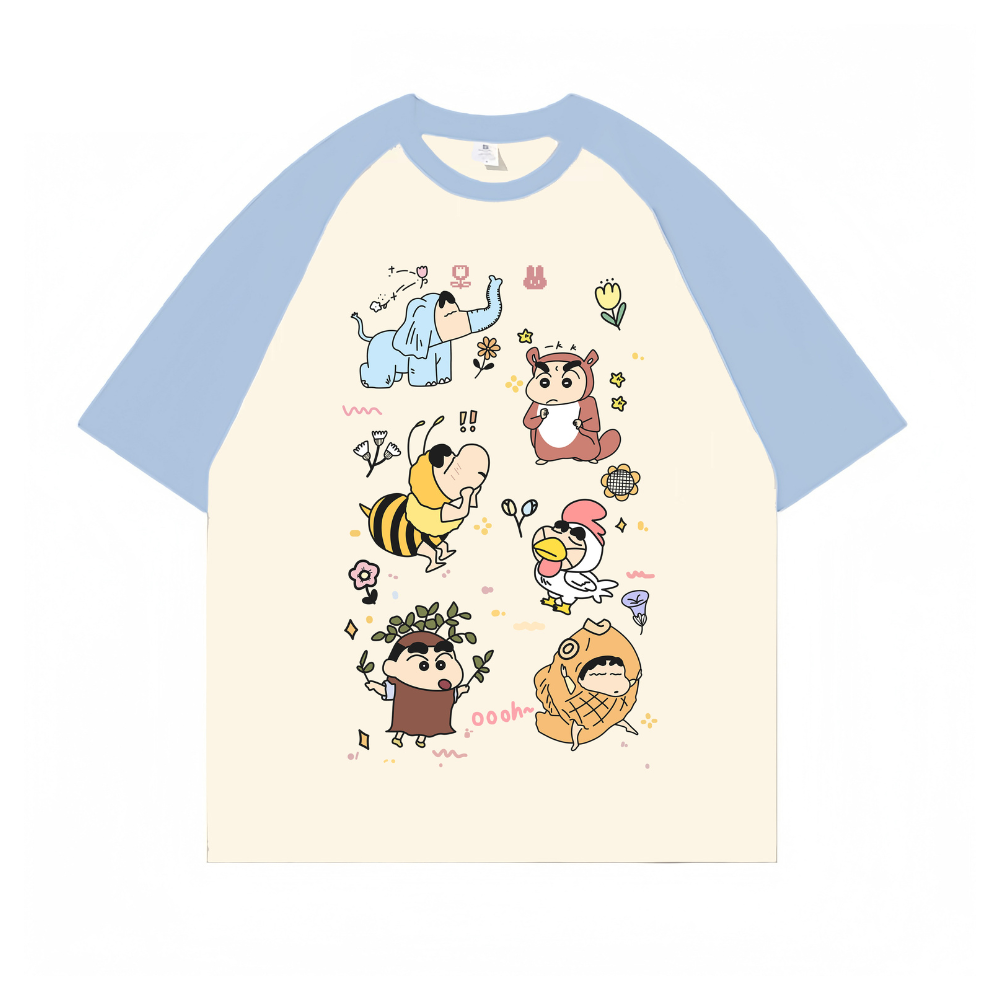 Introducing the perfect addition to any anime fan's wardrobe - the Crayon Shin-Chan Animal Dress Up T-shirt! This unique and playful t-shirt features the beloved character Shin-Chan dressed up as various animals, adding a fun and whimsical touch to your outfit.