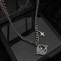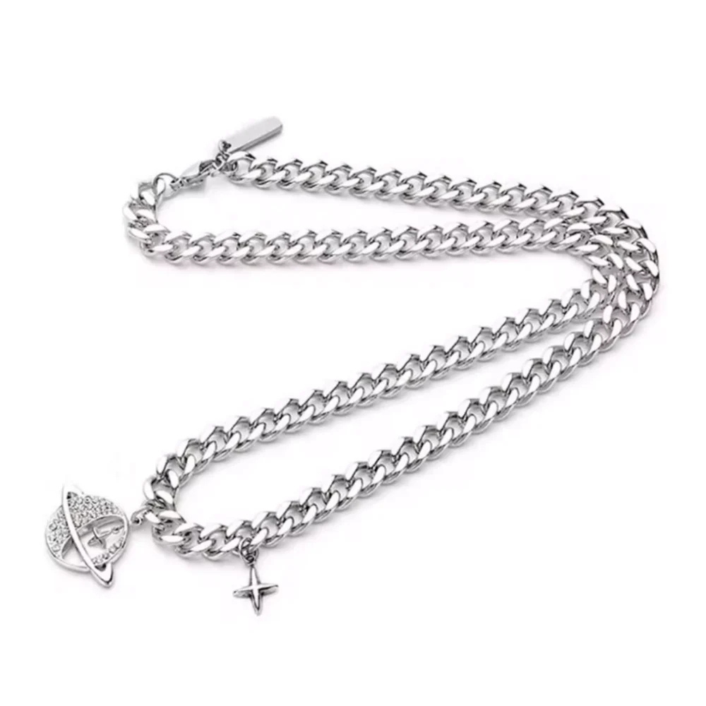 Elevate your style with our Cross Planet Pendant Necklace. Crafted with intricate details, our necklace features a stunning cross pendant that represents your inner strength and resilience. Made with premium materials, it is a timeless piece that adds a touch of elegance to any outfit.