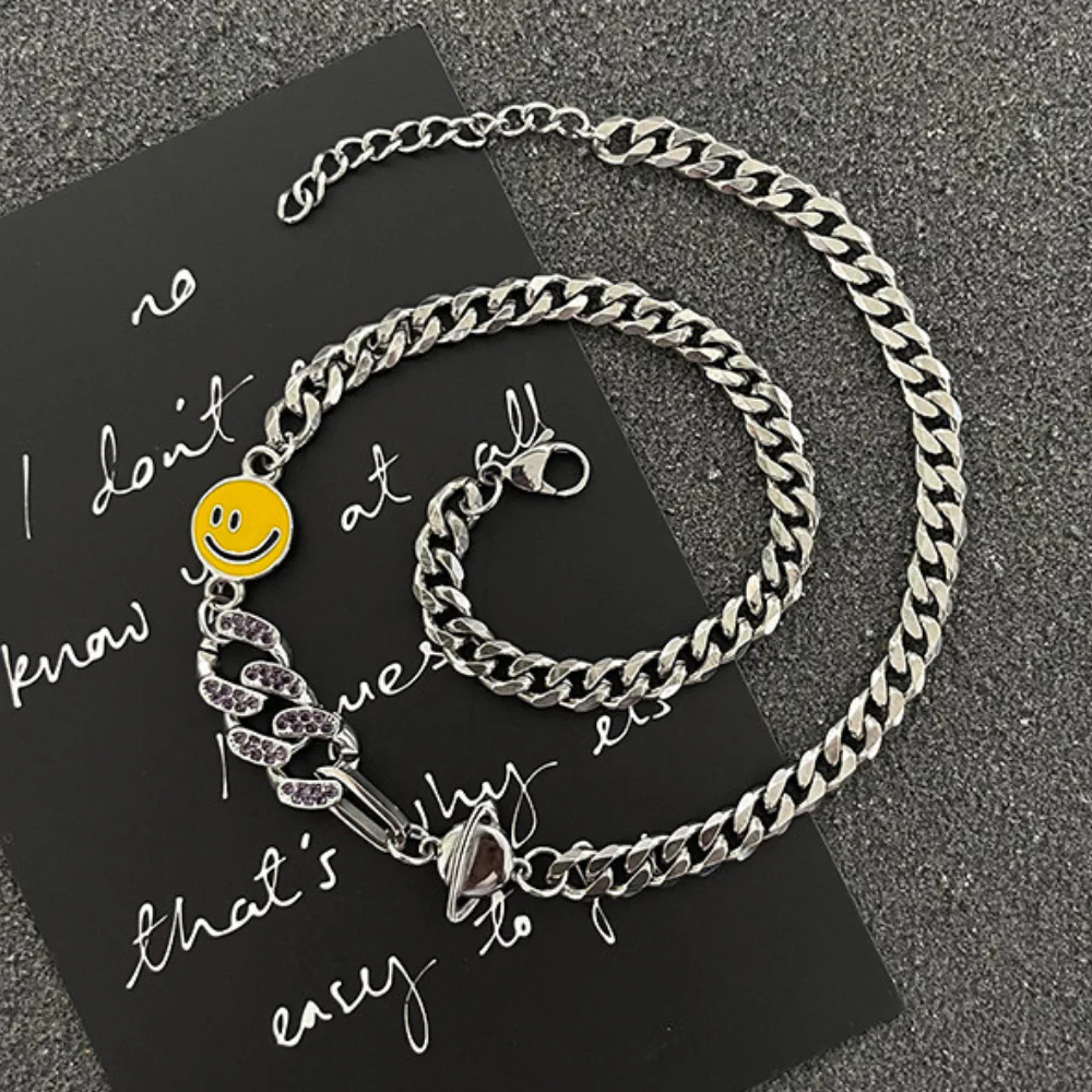 Elevate your style with our Cuban Smiley Clavicle Necklace. Crafted with a sophisticated and exclusive design, it adds a touch of luxury to any outfit. Made for the elegant and tasteful, this necklace is the perfect accessory to showcase your unique personality.