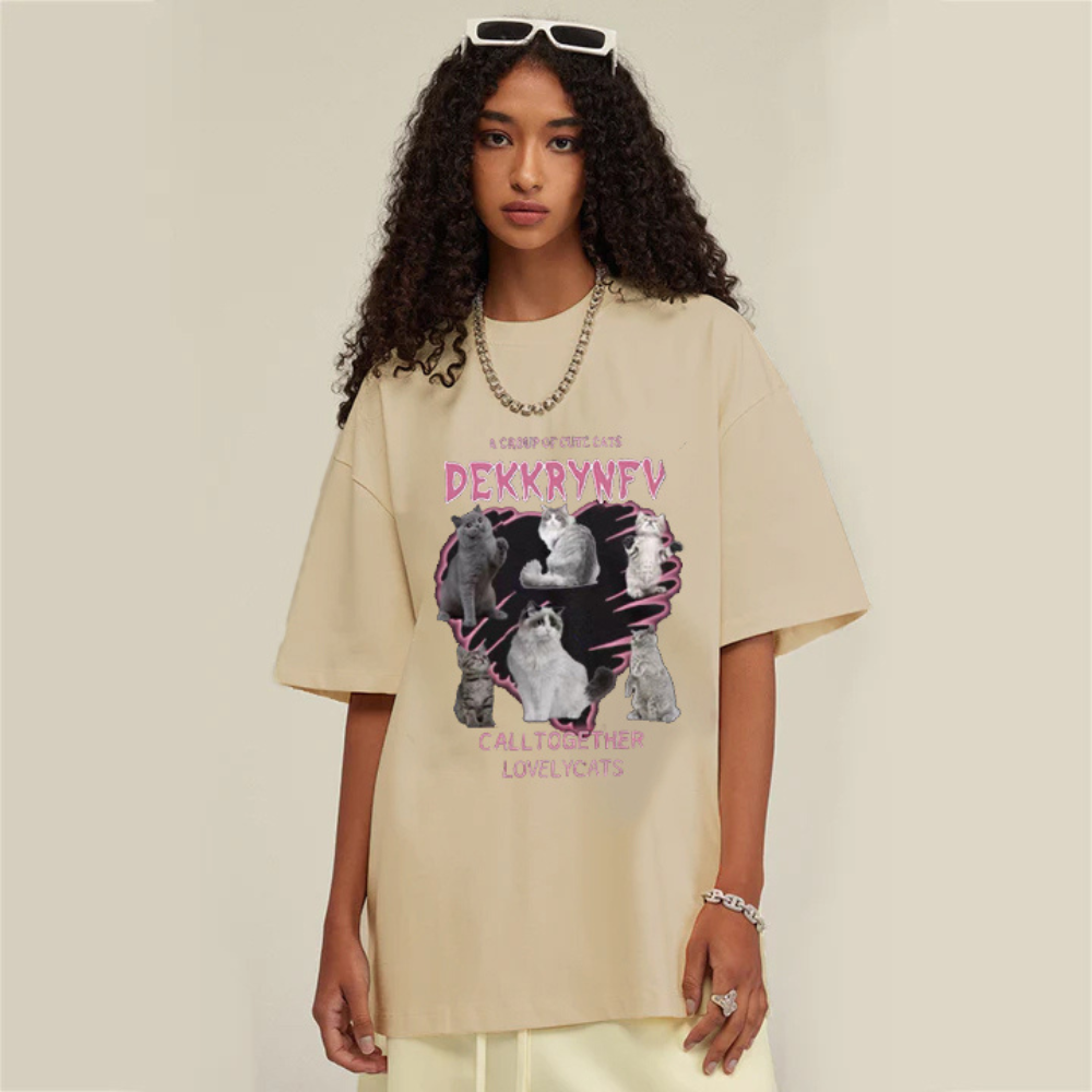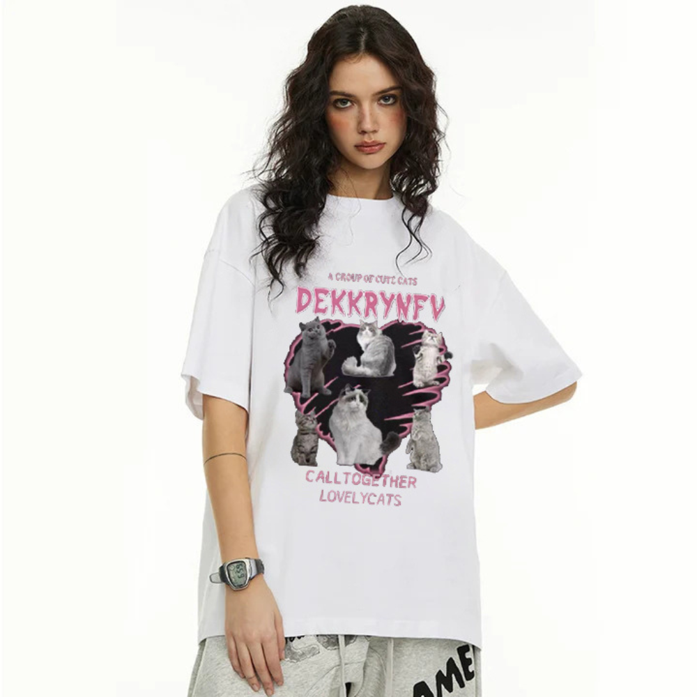 Not only is this t-shirt stylish, but it also promotes a message of love and appreciation for our feline friends. It's the perfect gift for any cat lover or a great way to show off your own love for cats. The high-quality material and durable print ensure that this t-shirt will be a long-lasting addition to your wardrobe.