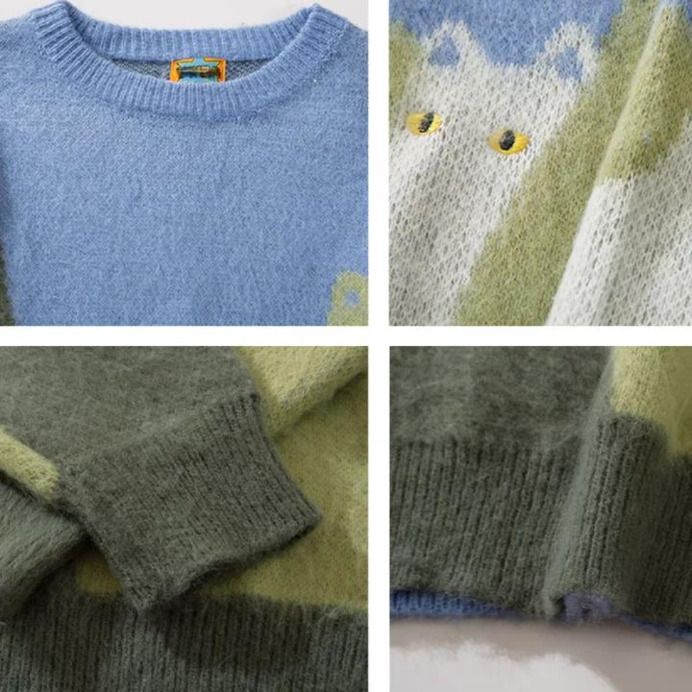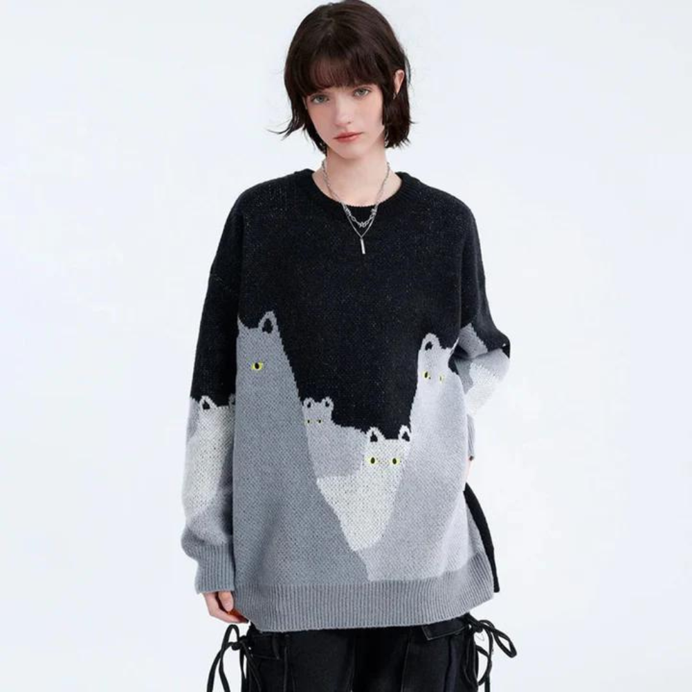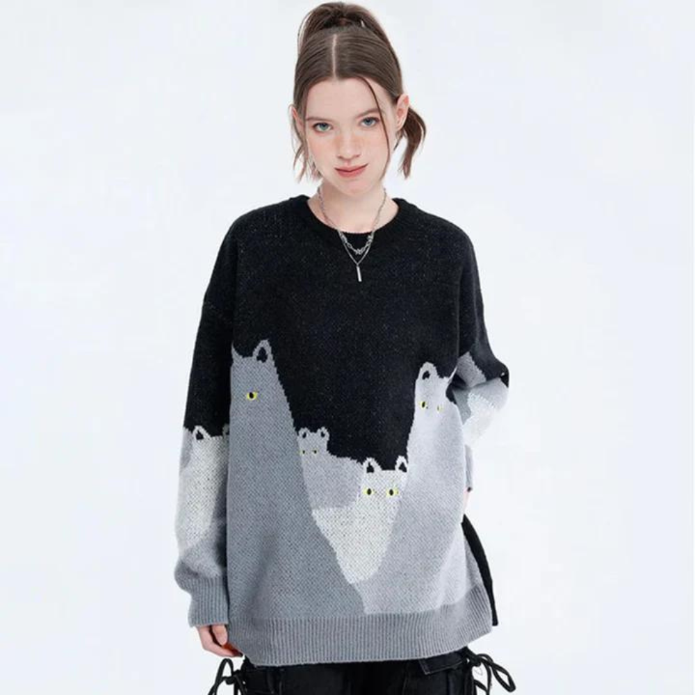 Introducing our Cute Cat Color Block Sweater, a must-have for every feline lover. Made with high-quality materials and featuring a charming color block design, this sweater is both stylish and comfortable. Show off your love for cats in an elegant and exclusive way.