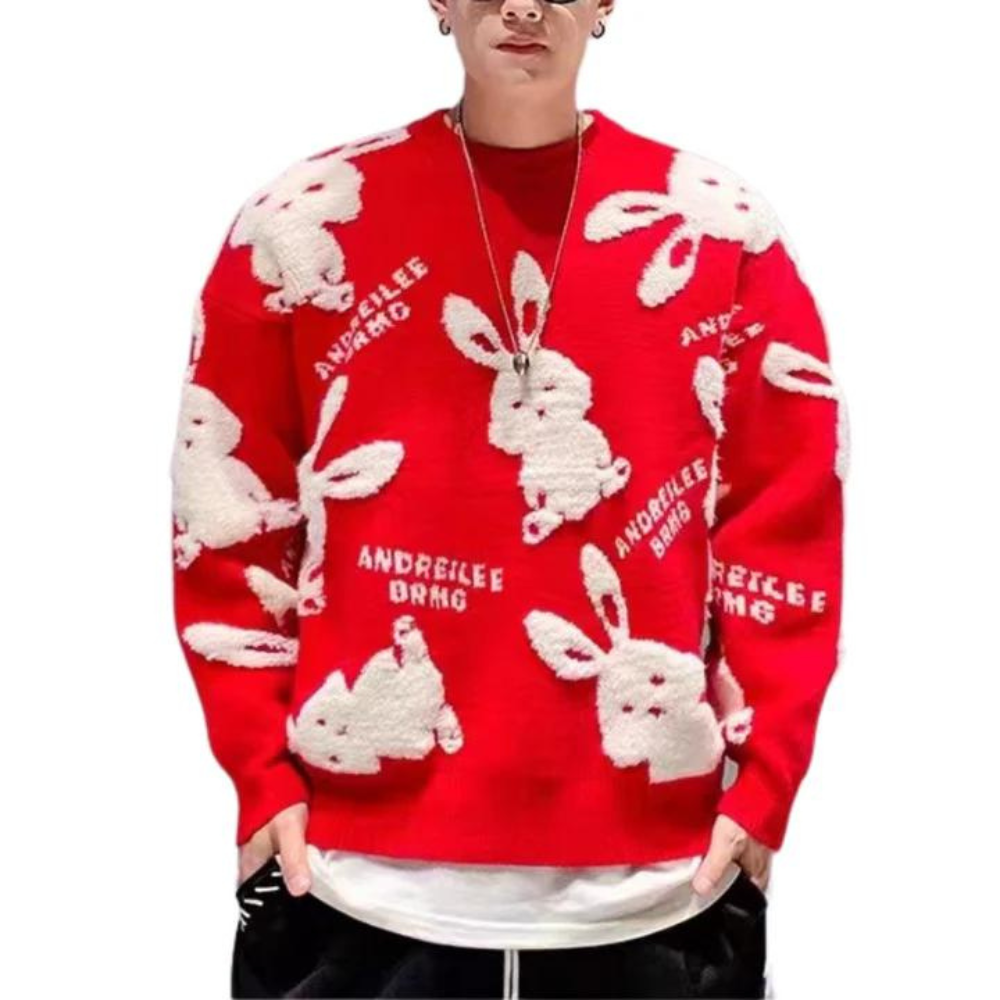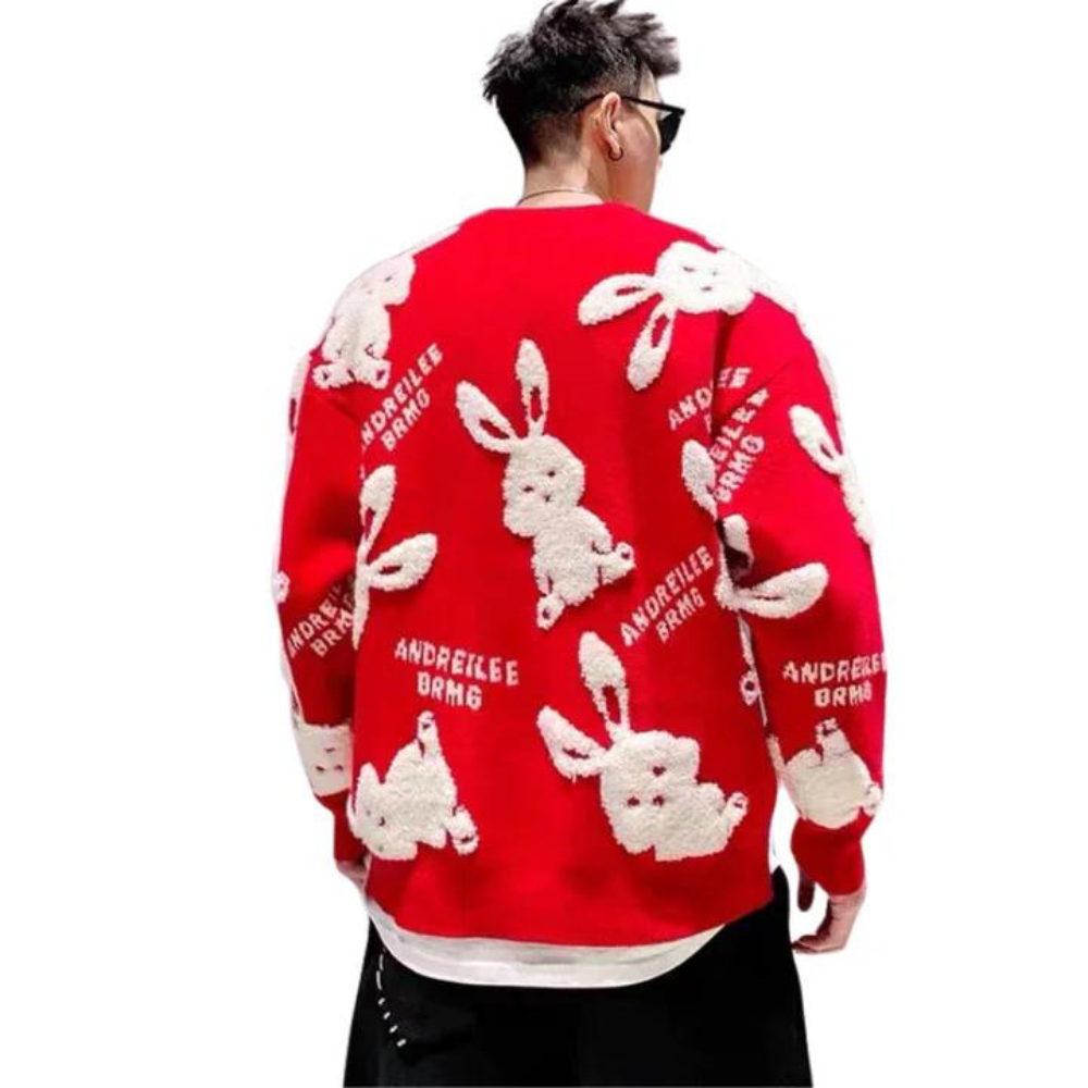 Cute Flocked Rabbit Sweater