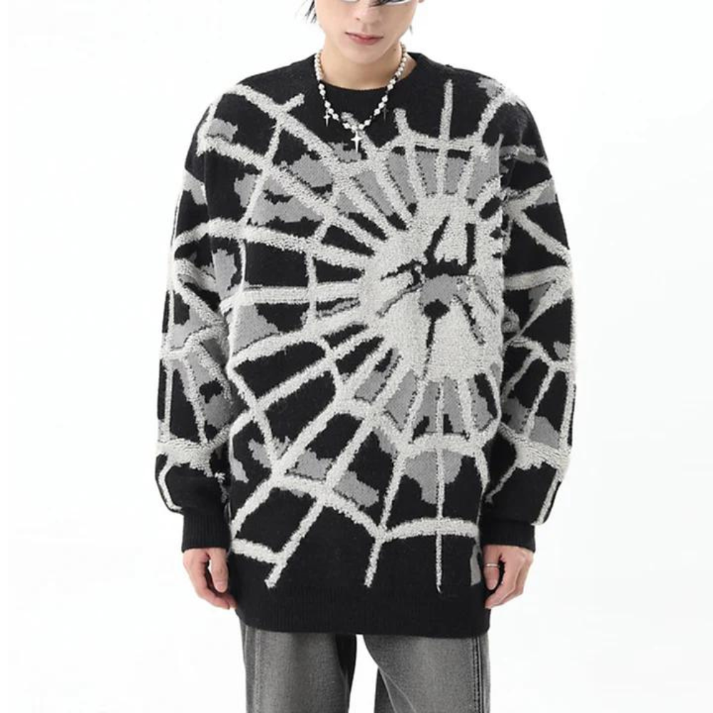 Take on the night in this Cute Spider Web Sweater! This eye-catching sweater is sure to turn heads with its daring webbed pattern. Challenge yourself to step out of your comfort zone with this bold and daring piece. Make a statement and take risks in the Cute Spider Web Sweater!
