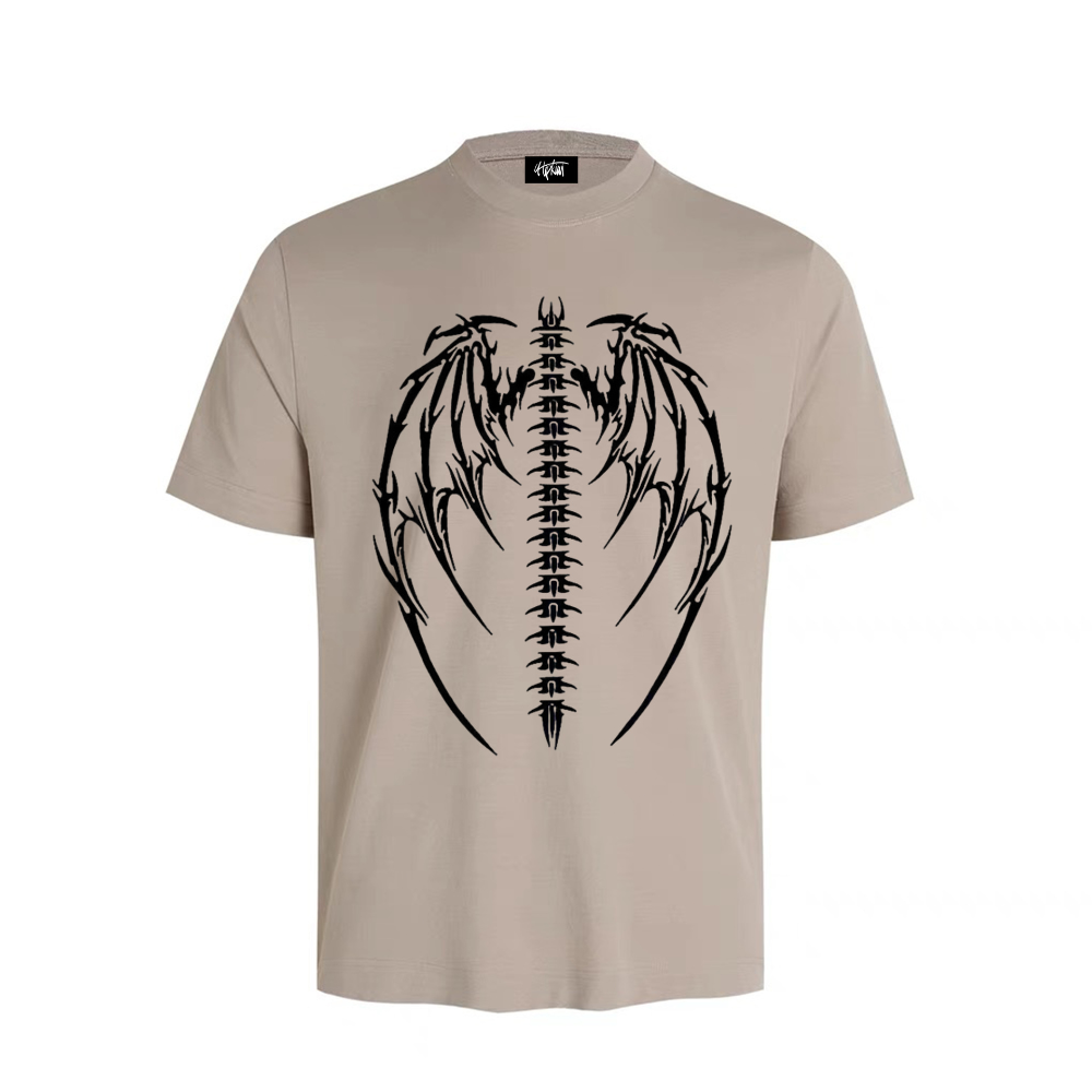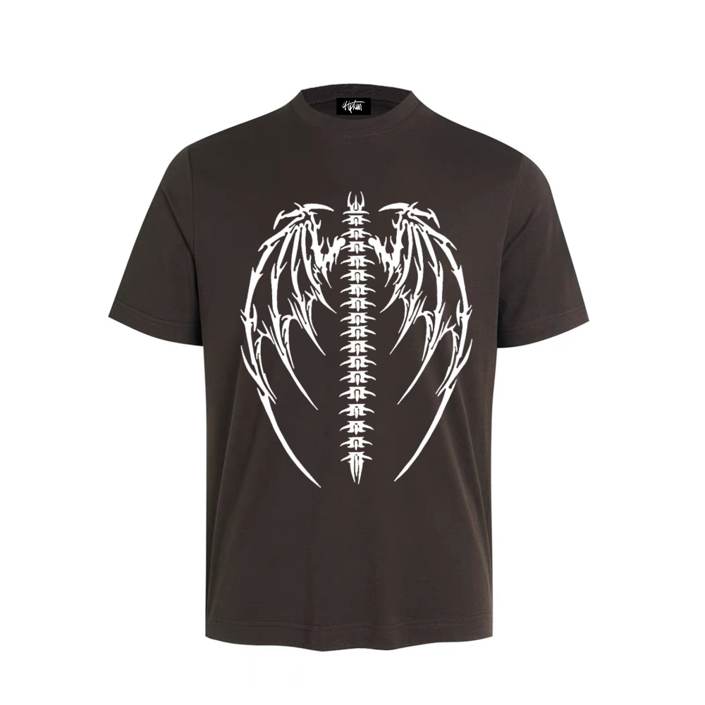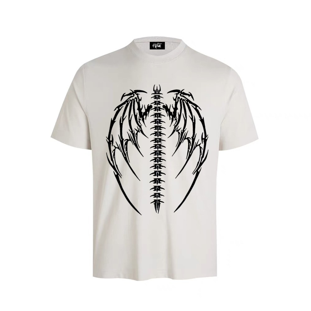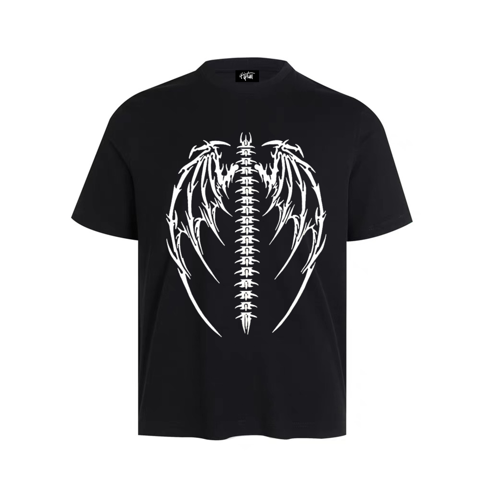 Crafted with high-quality materials, this T-shirt features a striking print of a dragon bone skull, giving it a fierce and mysterious vibe. The dark color palette adds to the overall edginess of the design, making it a must-have for any trendsetter.