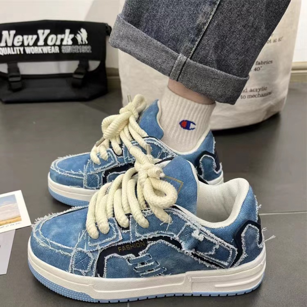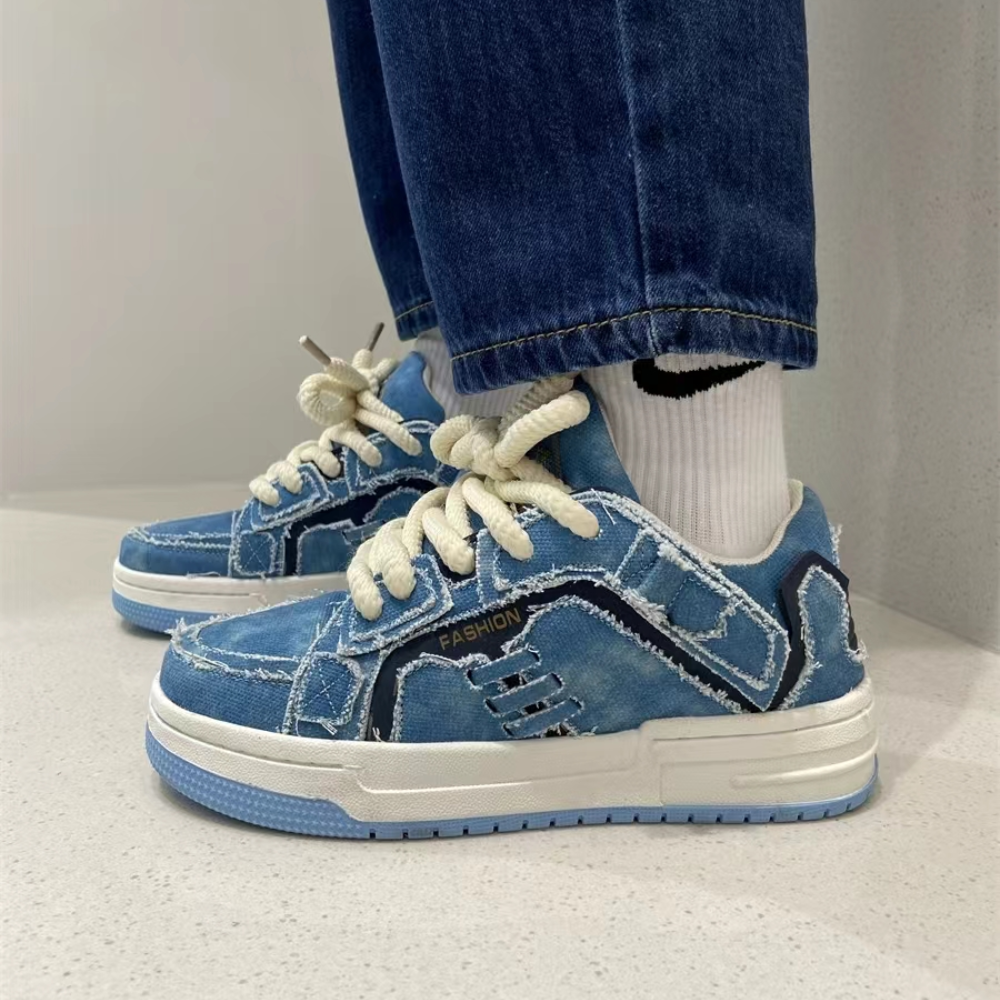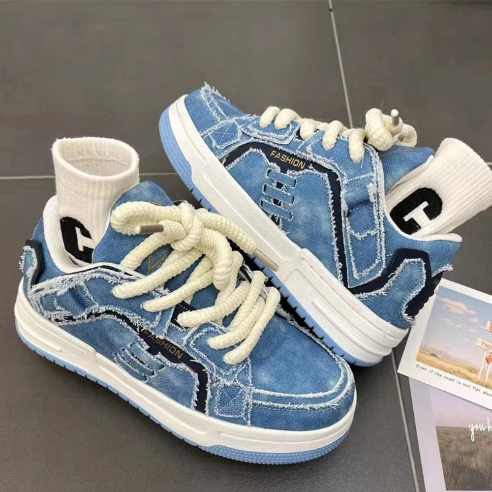 The classic denim design adds a touch of style to any outfit, making them a must-have for your wardrobe. The shoes feature a lace-up closure for a secure fit and a rubber sole for added traction. Whether you're running errands, hanging out with friends, or going for a walk, these shoes will keep your feet feeling comfortable and looking fashionable.