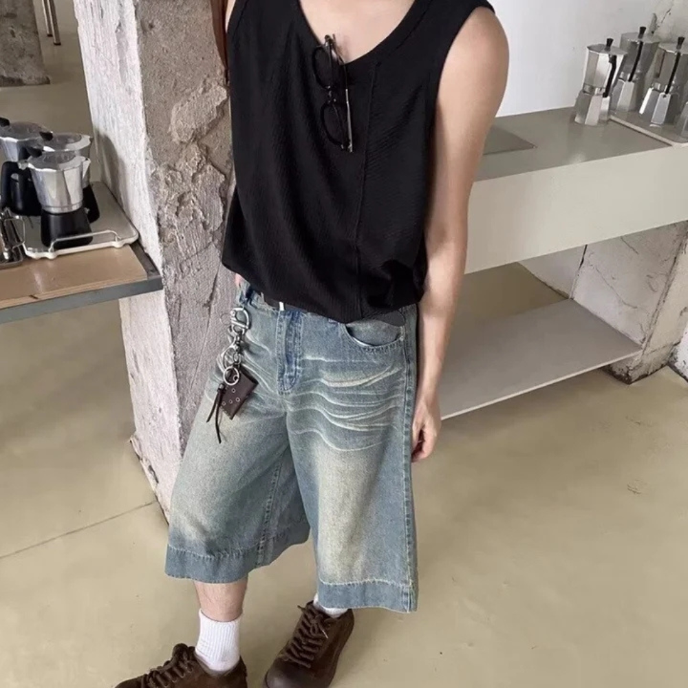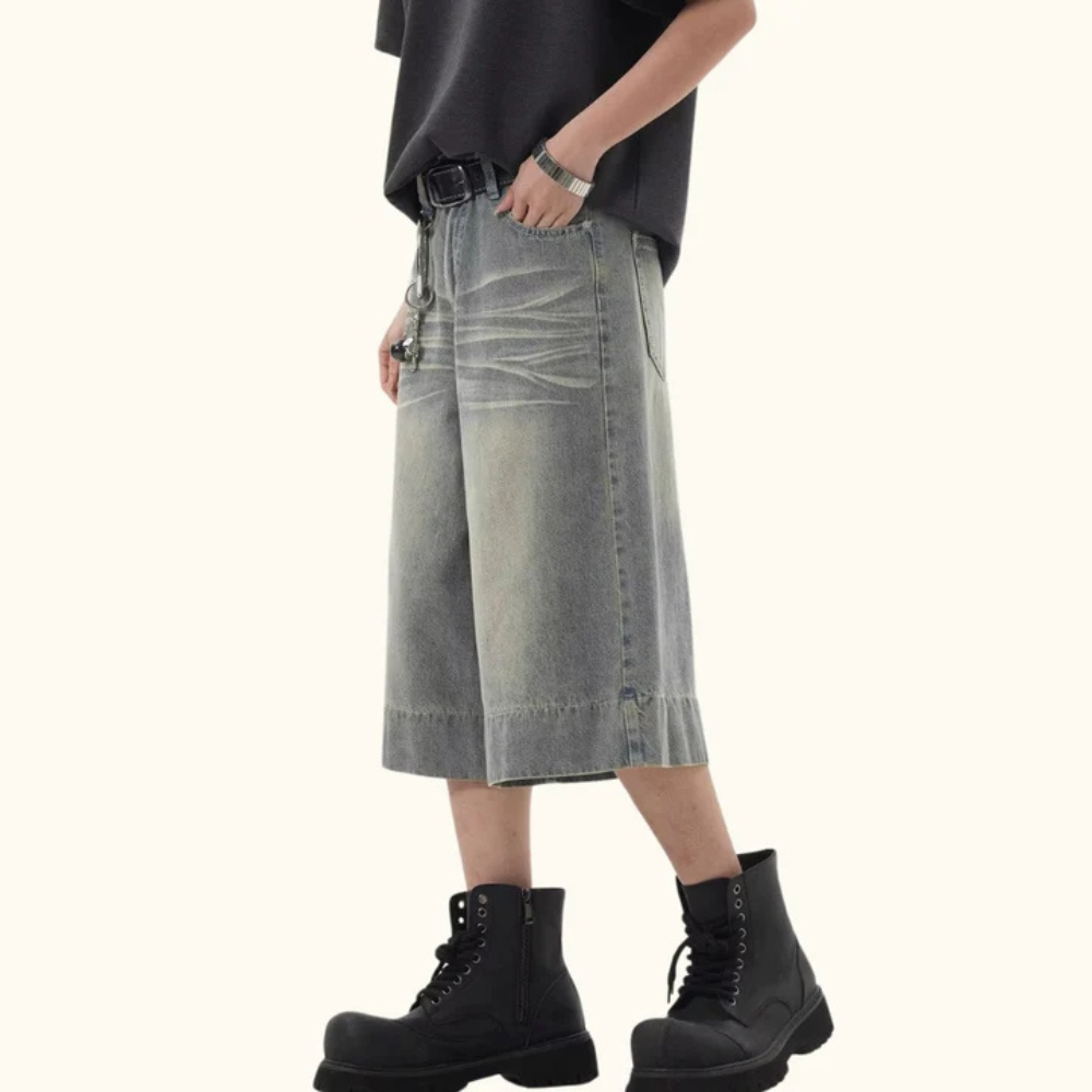 Upgrade your summer wardrobe with our Distressed Whiskered Denim Shorts. Made from high-quality denim, these shorts feature a trendy distressed and whiskered design that adds a touch of edginess to any outfit. The mid-rise waist and relaxed fit provide both comfort and style, making them perfect for any casual occasion.