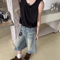 These shorts are versatile and can be dressed up or down depending on your mood. Pair them with a graphic tee and sneakers for a laid-back look, or dress them up with a blouse and sandals for a more polished ensemble. The classic five-pocket design and button fly closure add a touch of classic denim style to these modern shorts.