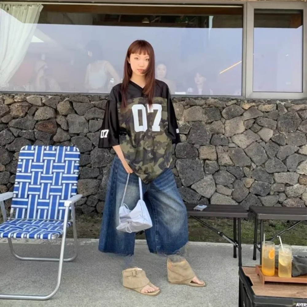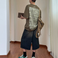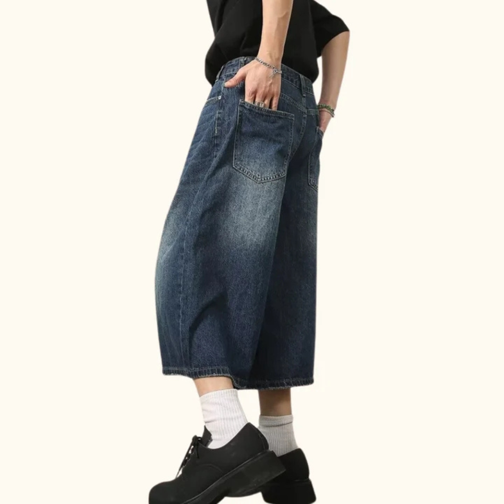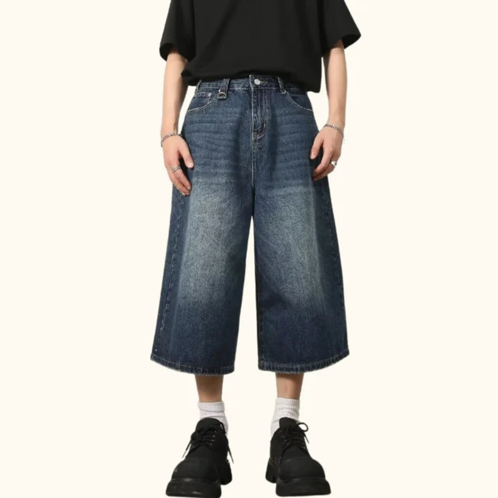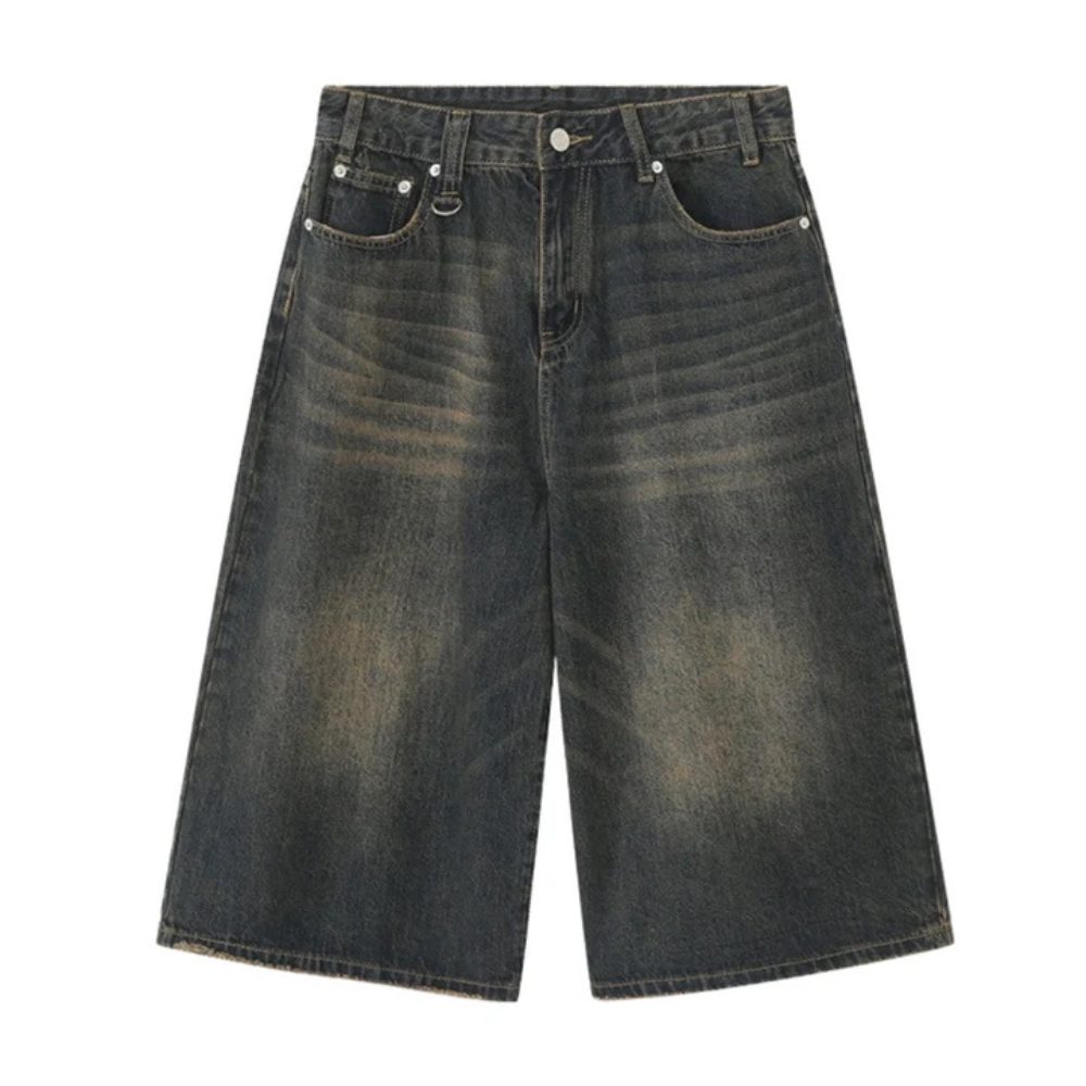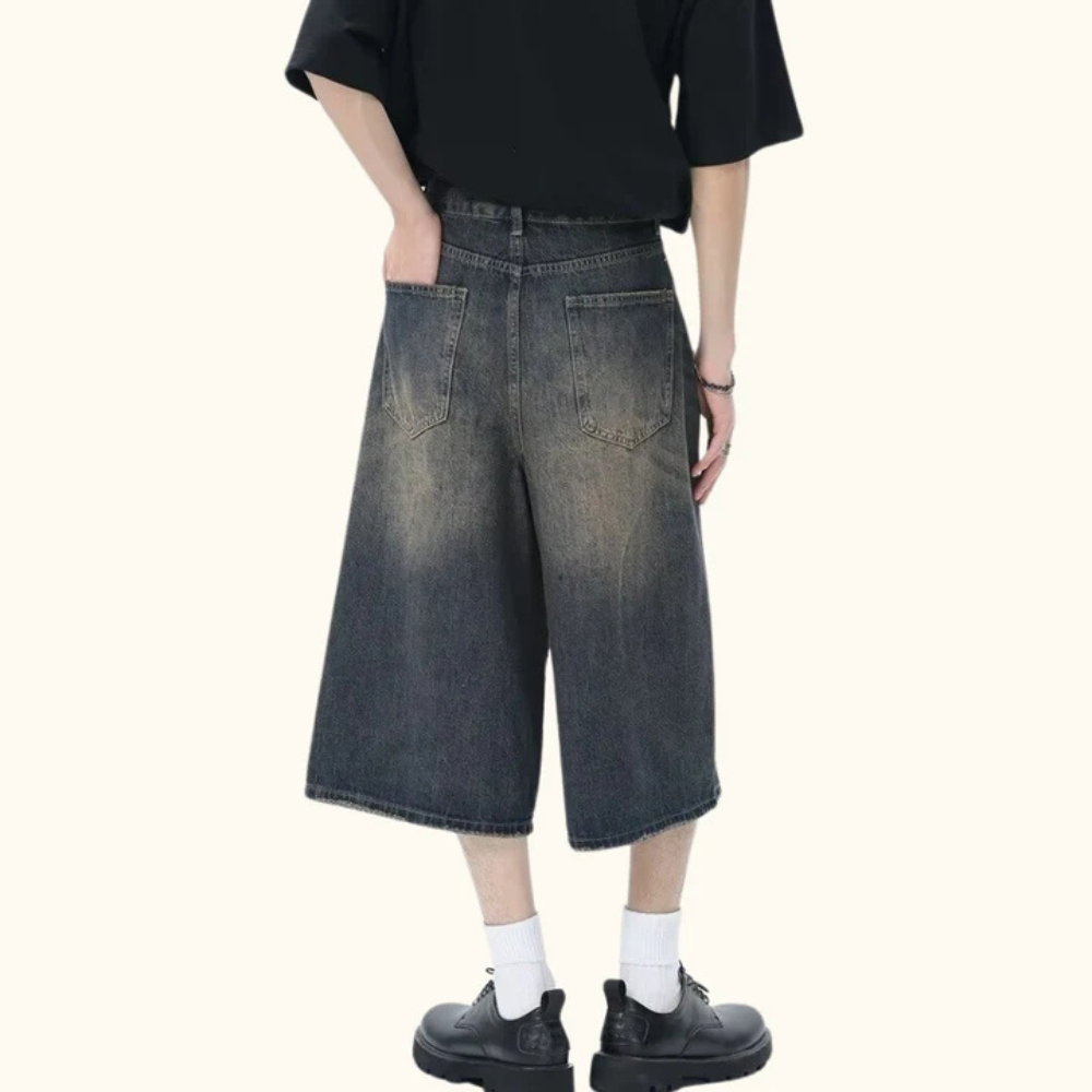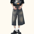 "Distressed Wide-Leg Denim" Shorts