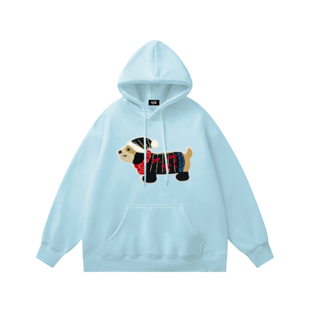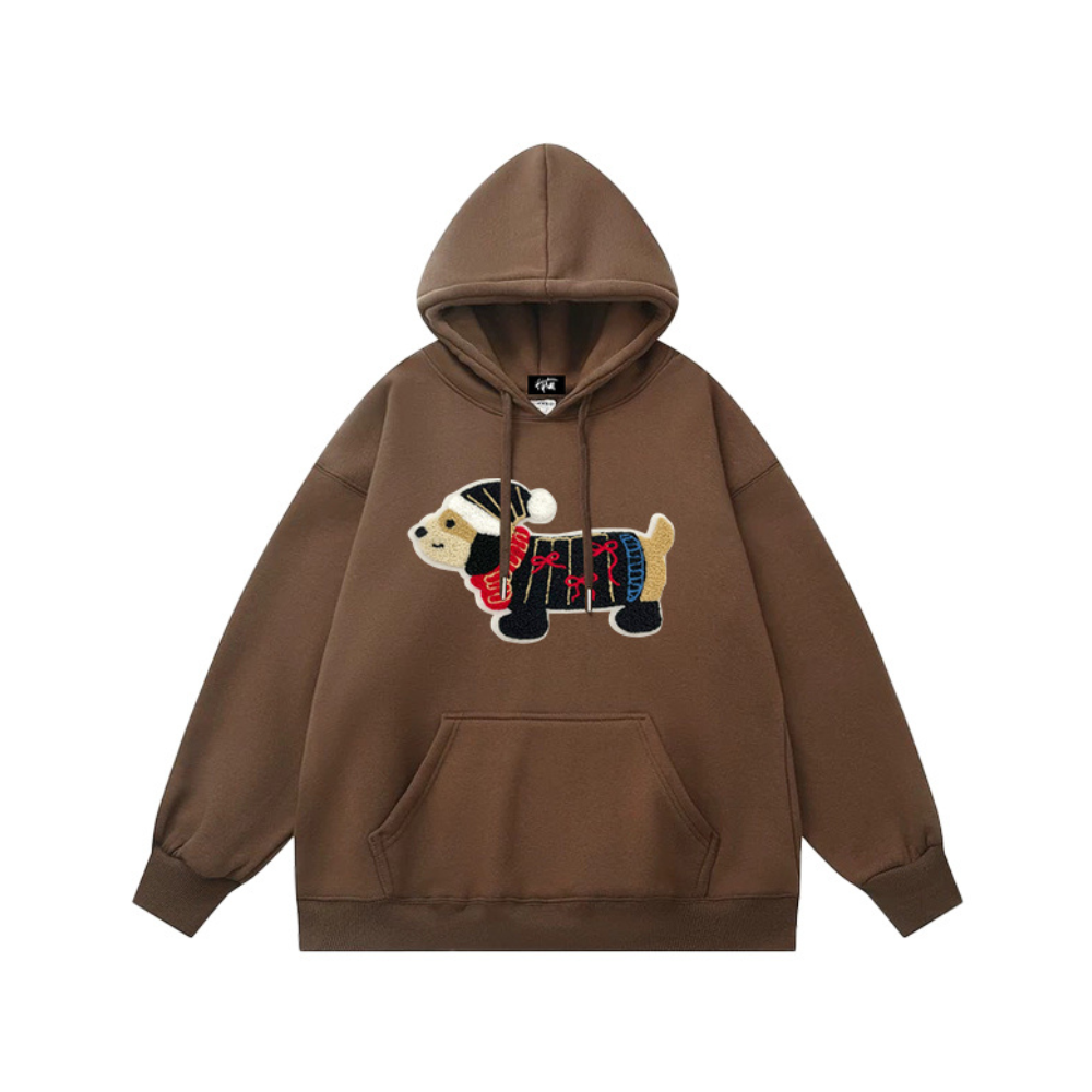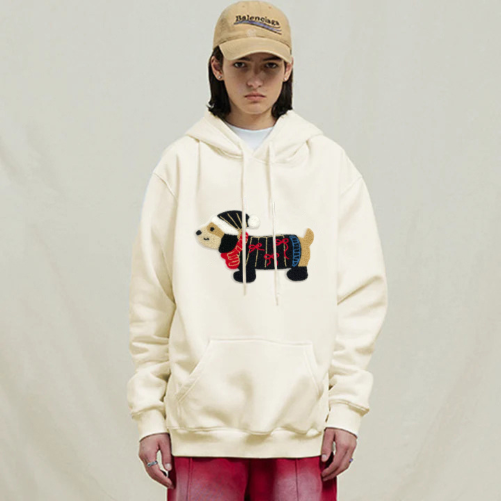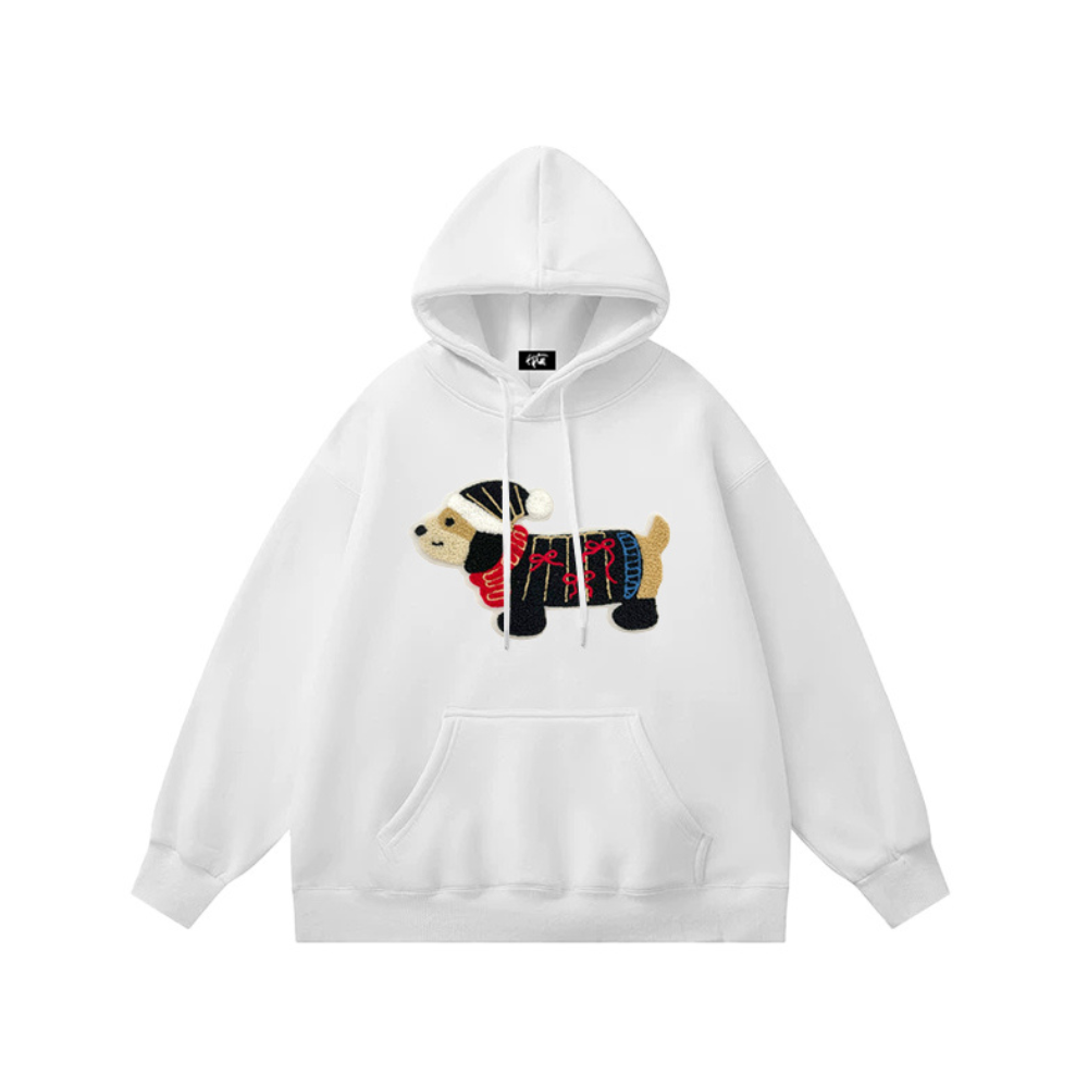 "Embroidered Scarf Spotted Puppy” Hoodie