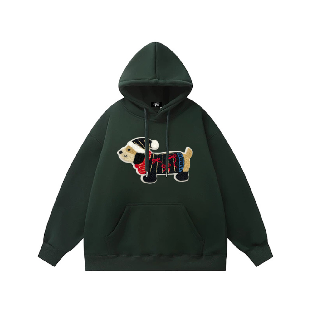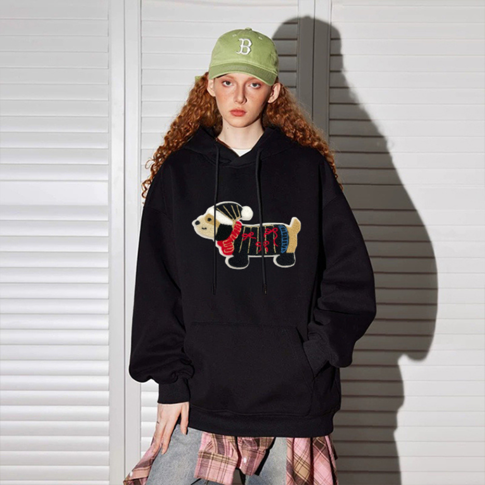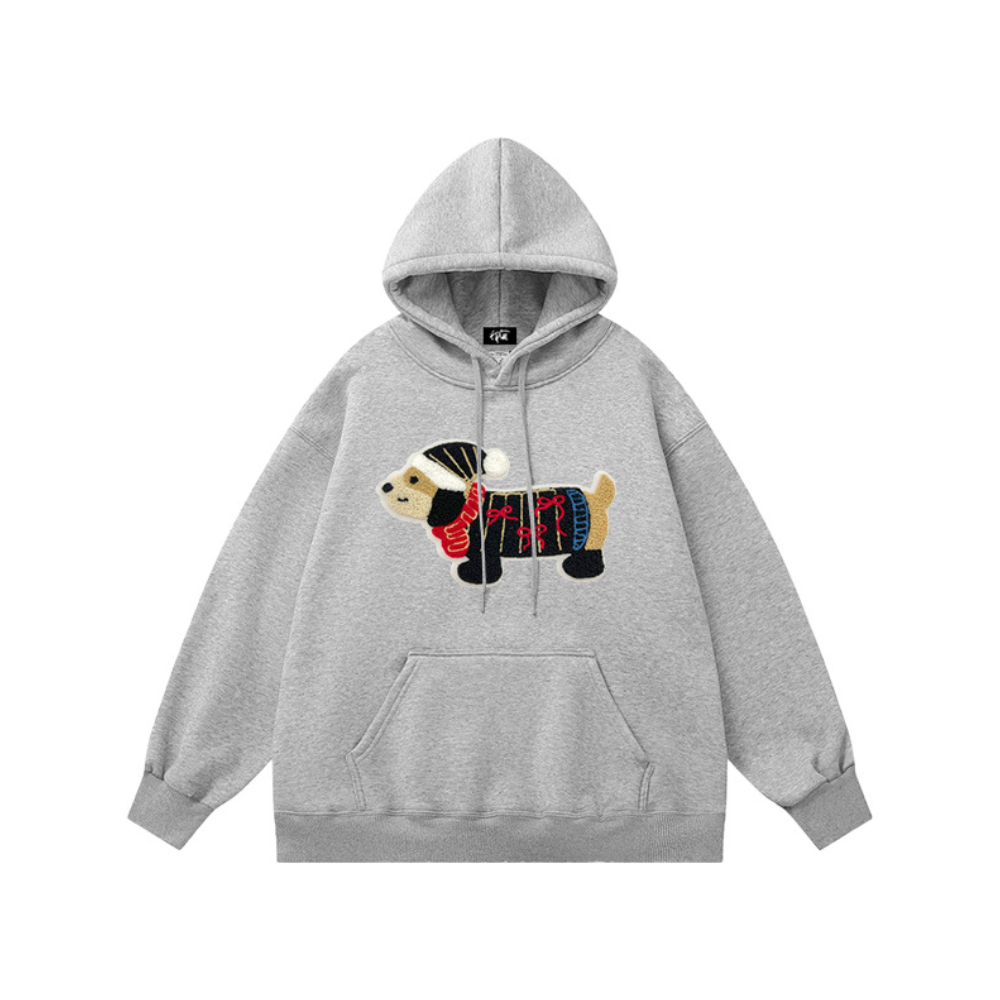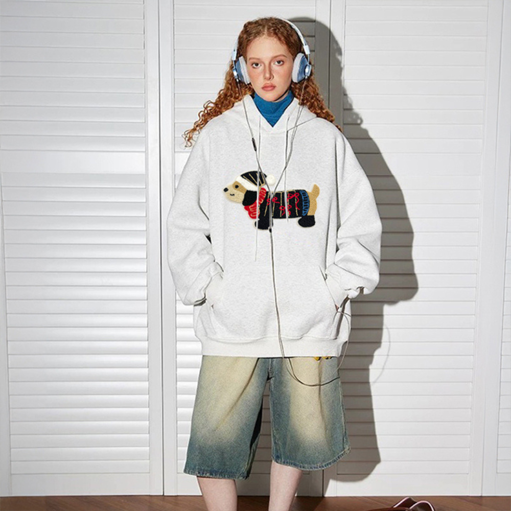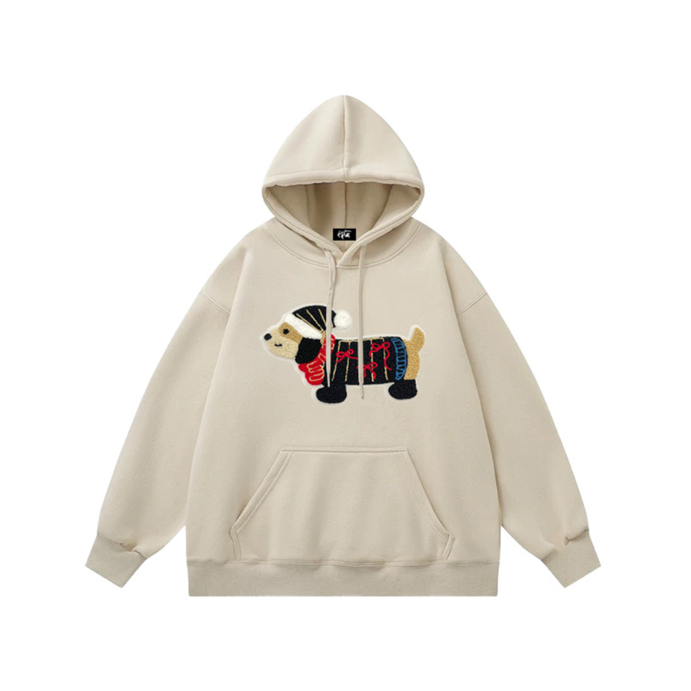 "Embroidered Scarf Spotted Puppy” Hoodie