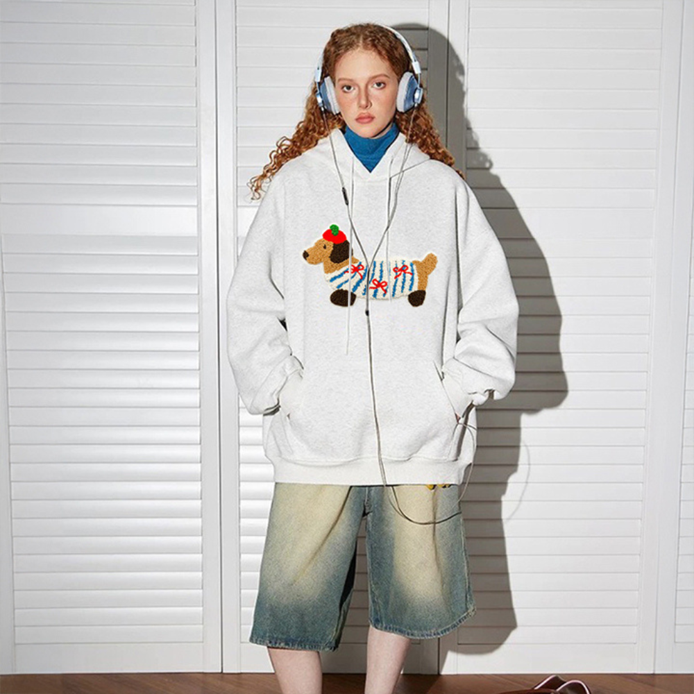 "Embroidered Tomato Spotted Puppy” Hoodie