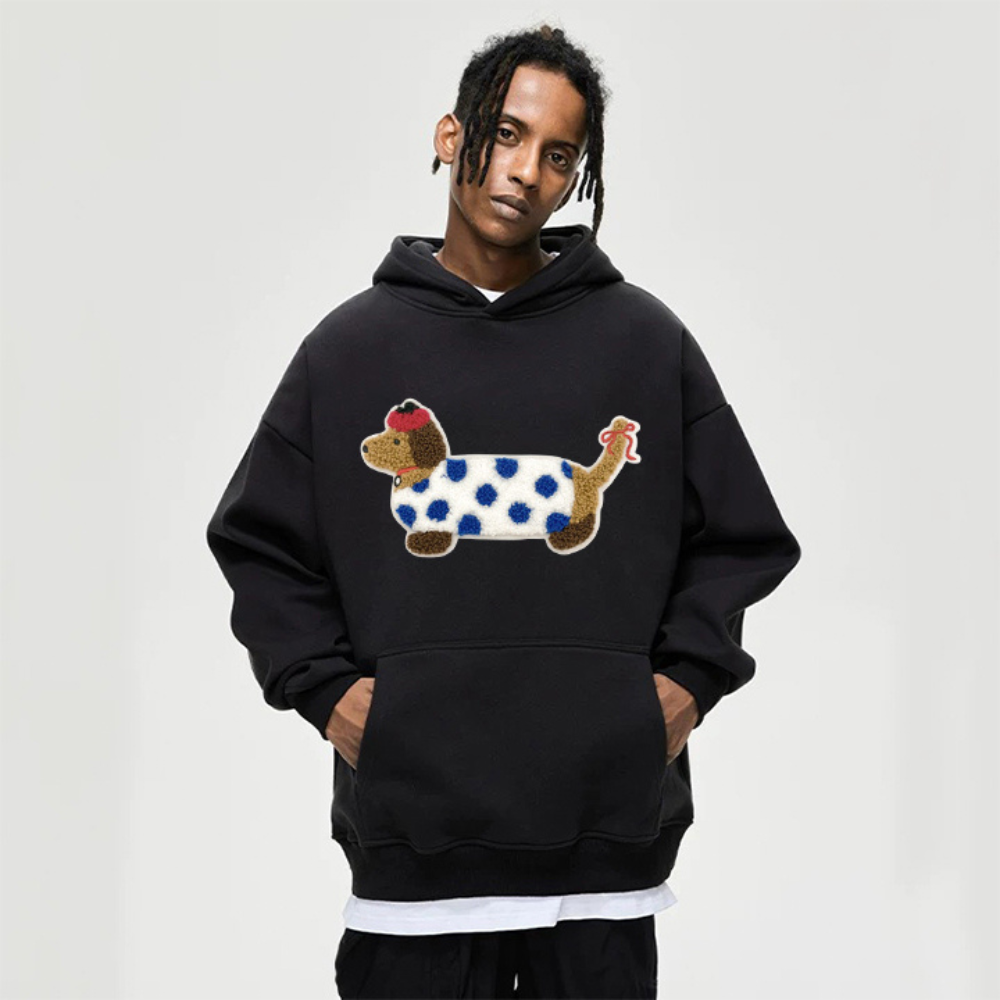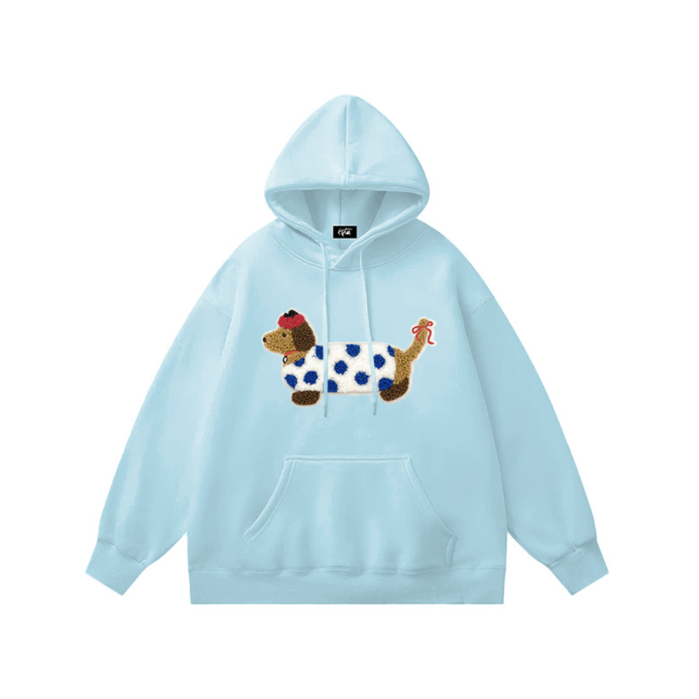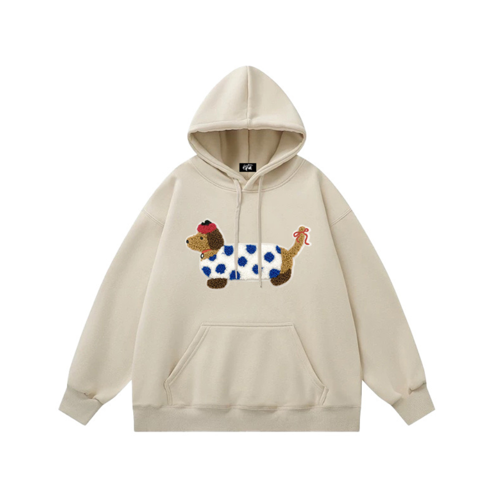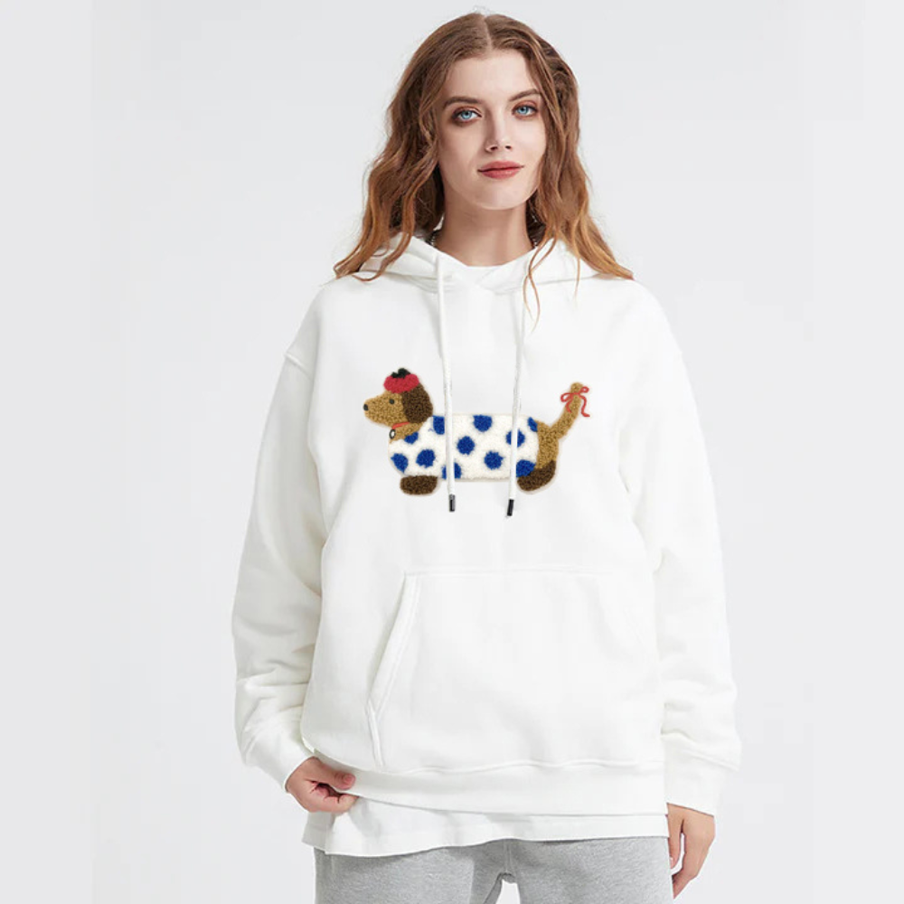 "Embroidered White Spotted Puppy” Hoodie