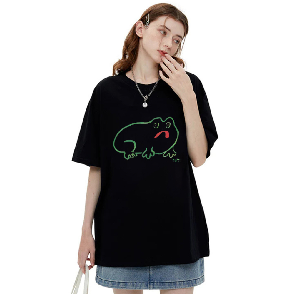 Introducing the perfect addition to your wardrobe - the Fat Pen Line Frog T-shirt! This unique and eye-catching t-shirt features a playful design of a chubby frog made out of colorful pen lines. Made from high-quality materials, this t-shirt is not only stylish but also comfortable to wear. The design is printed using advanced printing techniques, ensuring that it will not fade or peel off easily. Available in a range of sizes, this t-shirt is suitable for both men and women. Perfect for casual outings or as a statement piece, the Fat Pen Line Frog T-shirt is a must-have for any fashion-forward individual.