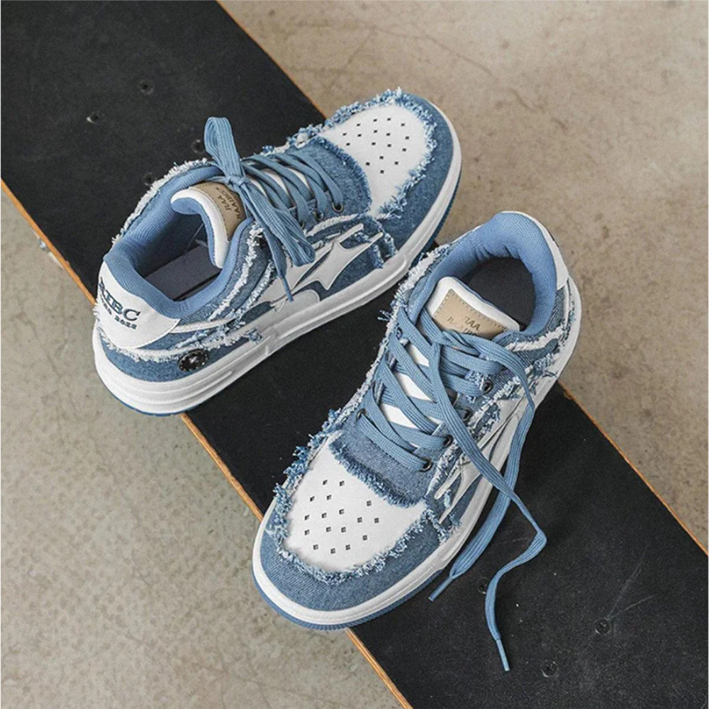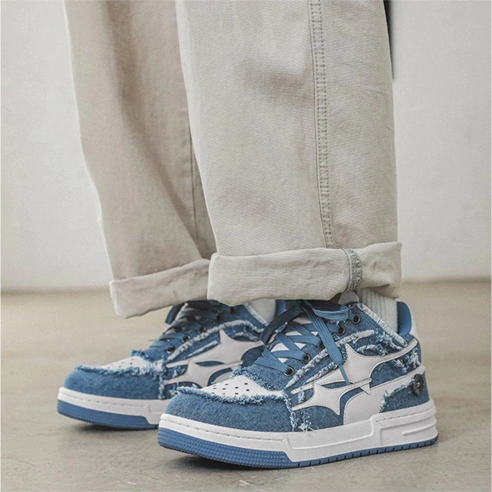 Hipkiwi Urban High Street Star Embroidery Casual Sneakers are the perfect addition to any wardrobe. These stylish shoes feature a unique rolled wheat ear pattern, mid-heeled design, round toes, patchwork design, soft and comfortable sole, and low cut design. They are available for all genders and all seasons.