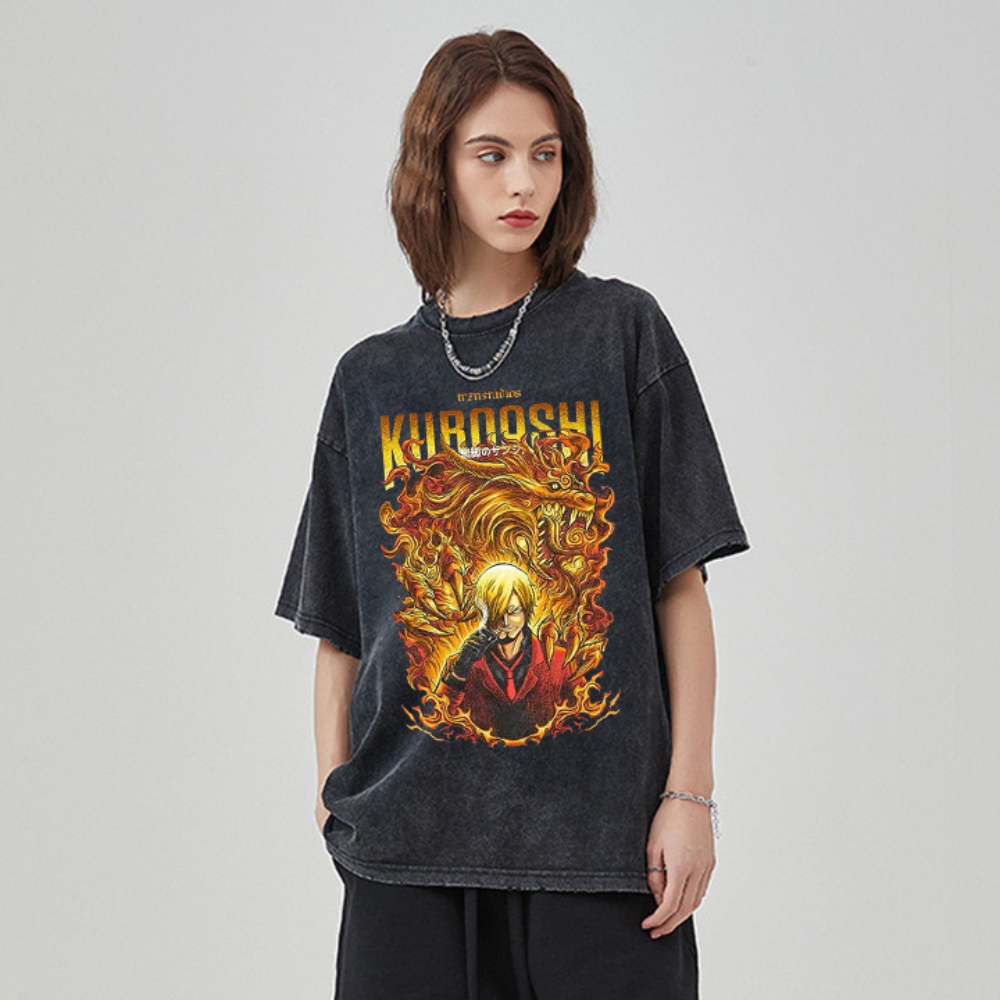 Featuring a striking poster of Sanji, the iconic character from the popular anime series, this t-shirt is sure to catch people's eyes and spark conversation. The print's vibrant colors and exquisite details are a testament to the high-quality printing techniques used to create this masterpiece.