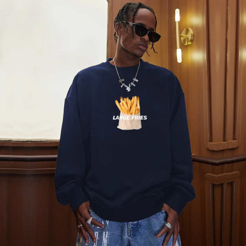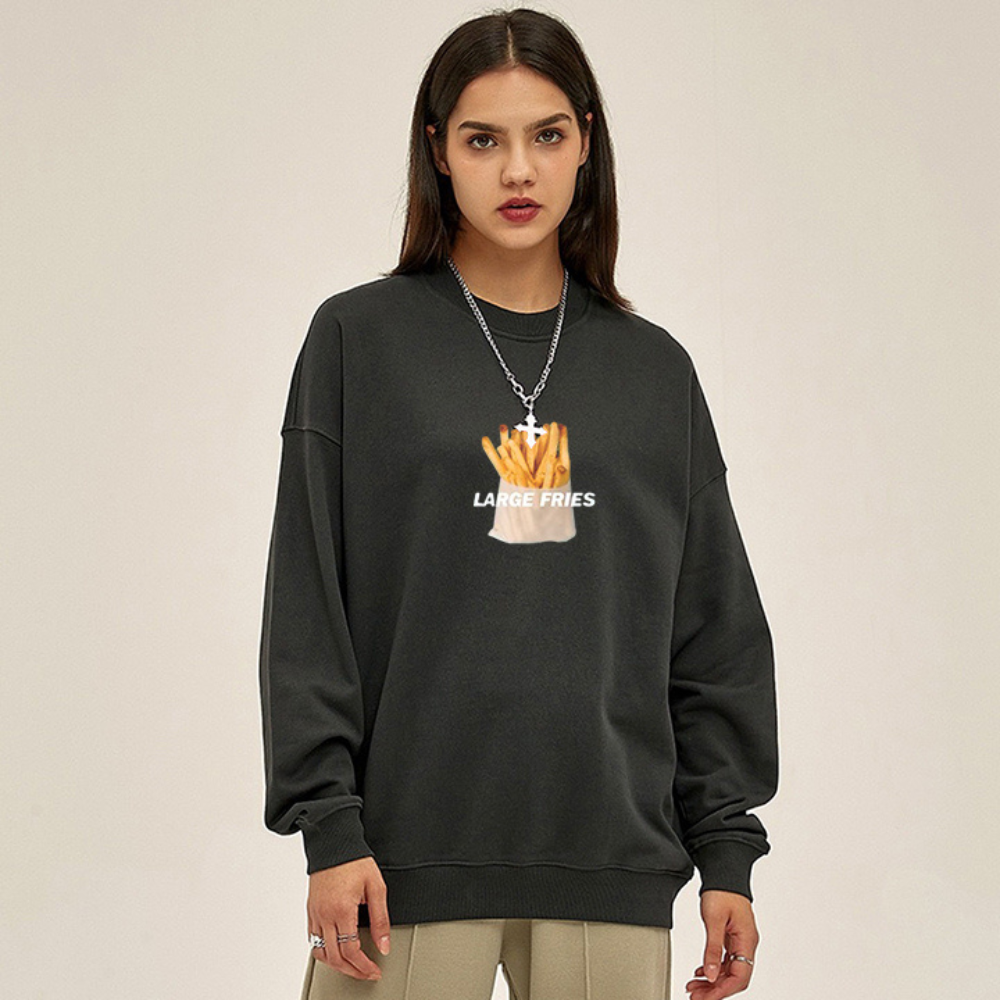 Get ready to add some fun and flavor to your wardrobe with our French Fries Salad Sweatshirt. Made from high-quality materials, this sweatshirt is not only comfortable but also stylish. The design features a mouth-watering image of a plate of French fries topped with a fresh and colorful salad, making it a unique and eye-catching piece.