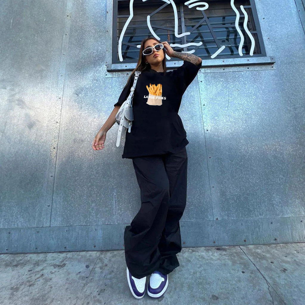 Introducing our newest addition to the Hip Kiwi collection - the French Fries Salad T-shirt. This unique and playful t-shirt is perfect for anyone who loves food and fashion. Made from high-quality cotton, this t-shirt is soft, comfortable, and durable. The design features a mouth-watering image of a bowl of French fries topped with a colorful salad, making it a fun and eye-catching piece to add to your wardrobe.