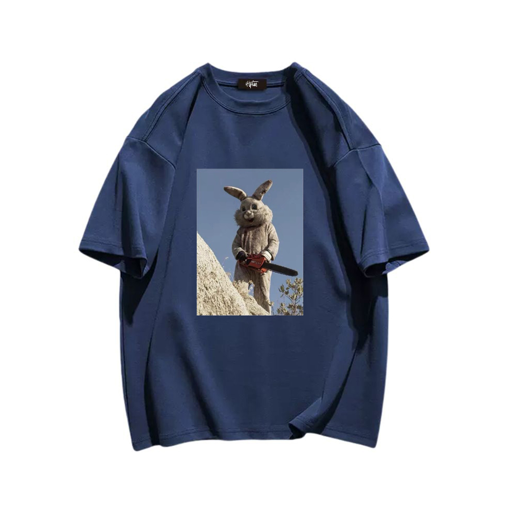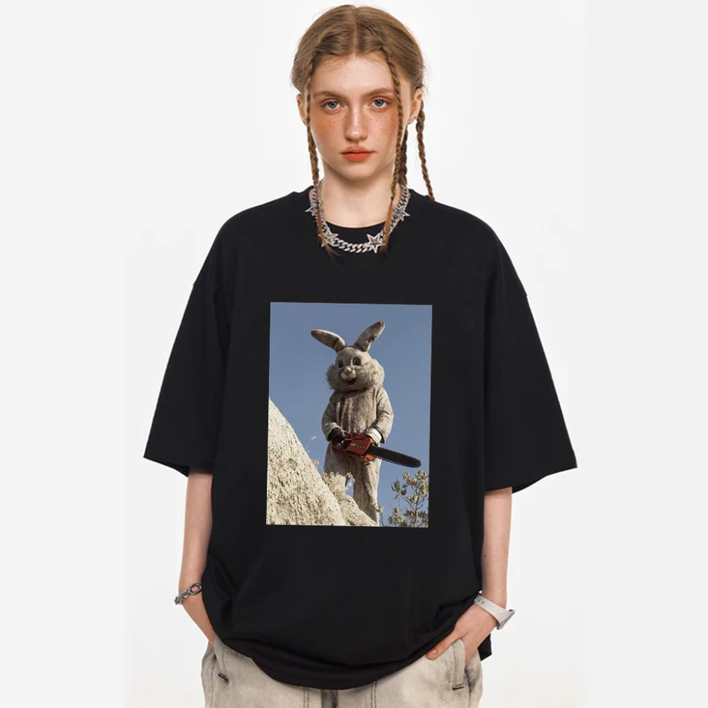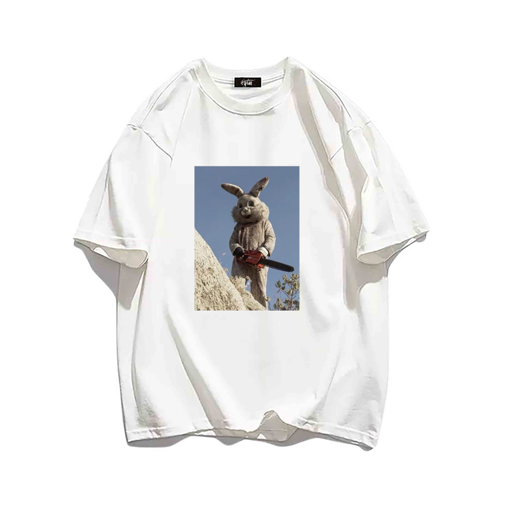 The eye-catching niche print features a playful bunny design, while the bright colors and unique pattern make this t-shirt a must-have for any fashion-forward person.