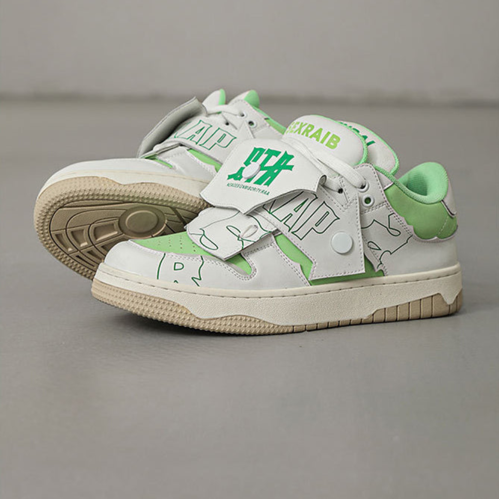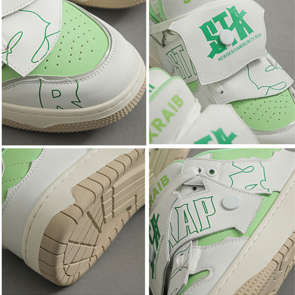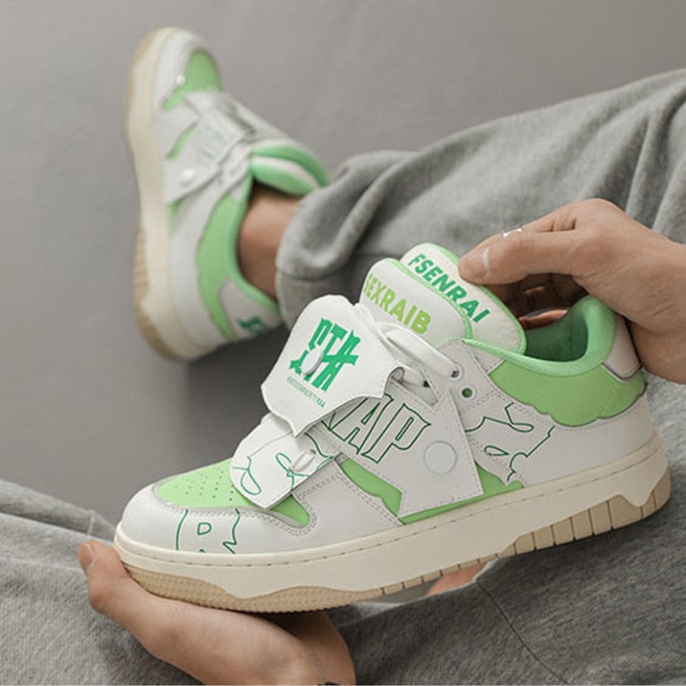The Green Graffiti Shoes from Hipkiwi are the perfect way to enhance your wardrobe. Get yours today! These shoes blend sophistication and style, with a unique twist from the contrasting rolled wheat ear pattern. Crafted for luxury, the attractive and fashionable sneaker will leave you making a statement.