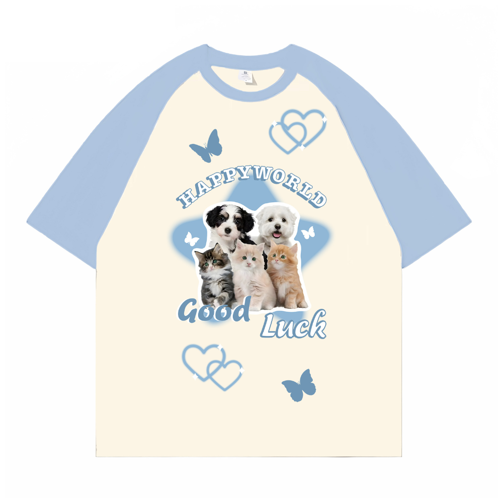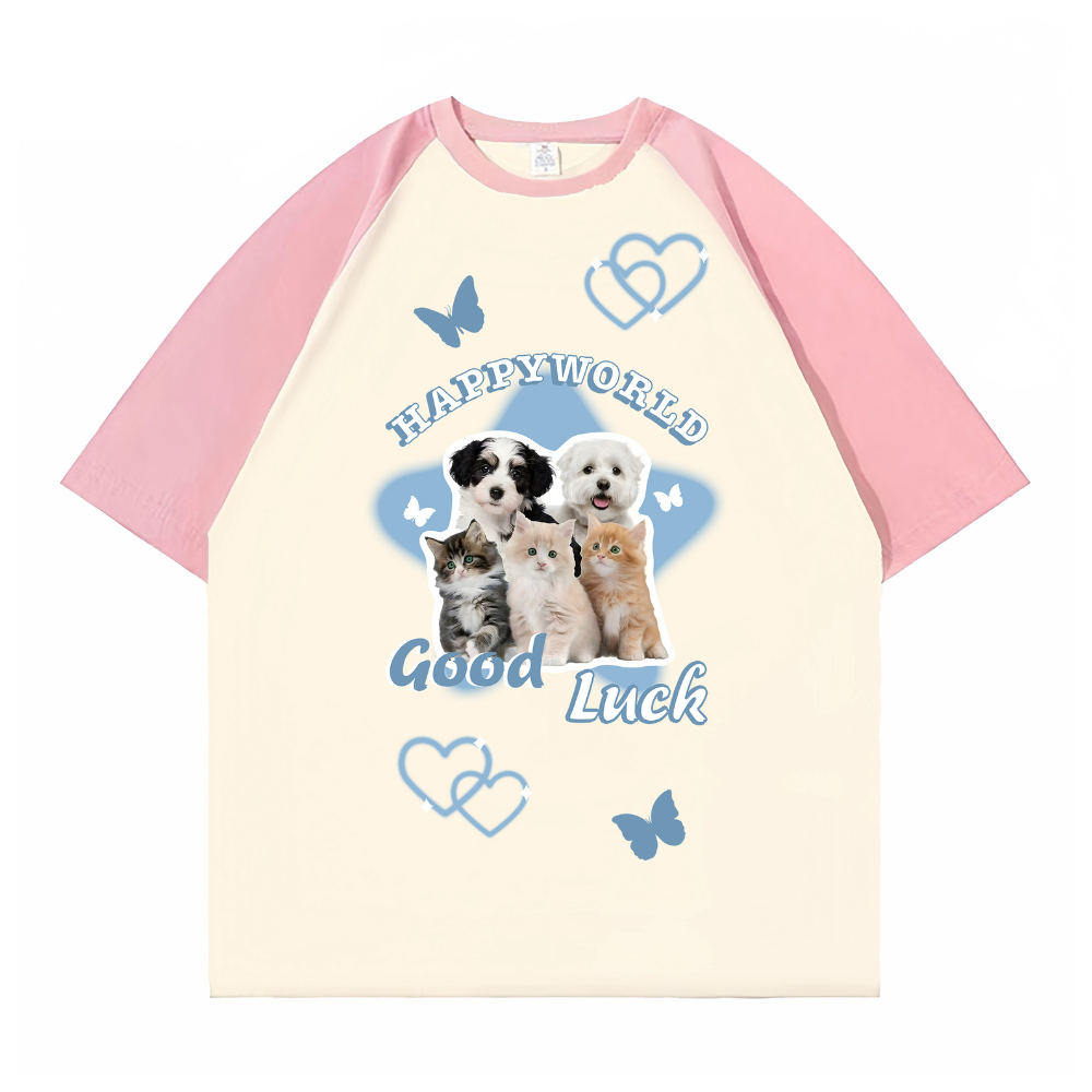 Available in a variety of sizes, this T-shirt is perfect for both cat and dog lovers. It's a great way to show off your love for these furry companions and spread a positive message of coexistence. The vibrant colors and cute design make it a fun and eye-catching addition to any wardrobe.