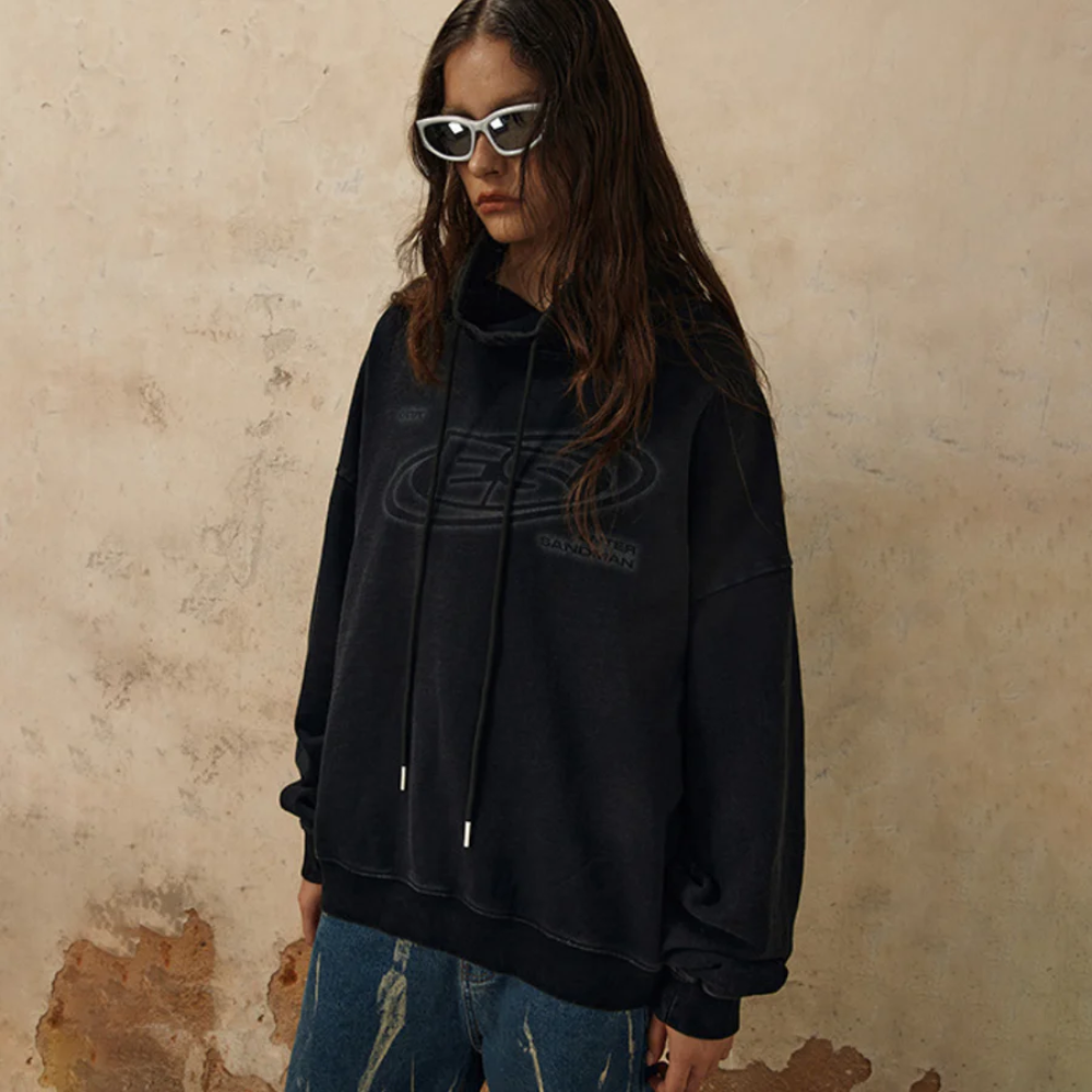 "High Collar Washed Letter" Sweatshirt