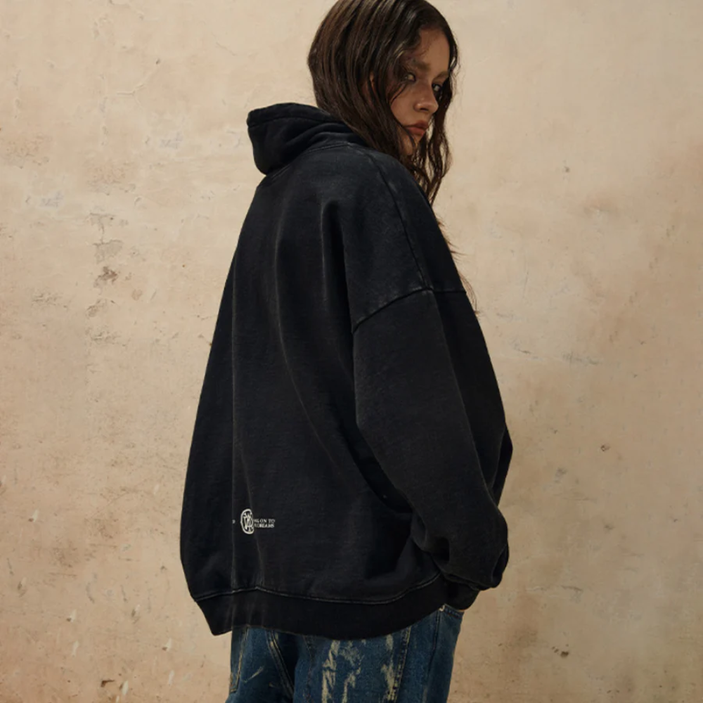 Upgrade your wardrobe with our latest innovation - the High Collar Washed Letter Sweatshirt. Made from premium quality fabric, this sweatshirt is designed to provide both comfort and style. The high collar adds a touch of sophistication, while the washed letter design gives it a trendy and edgy look.