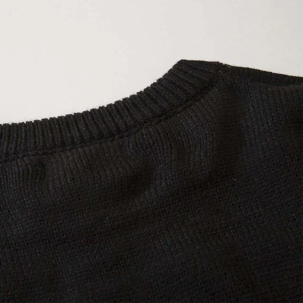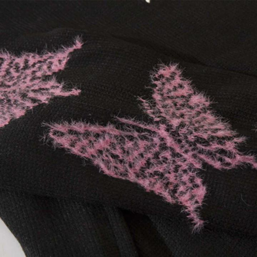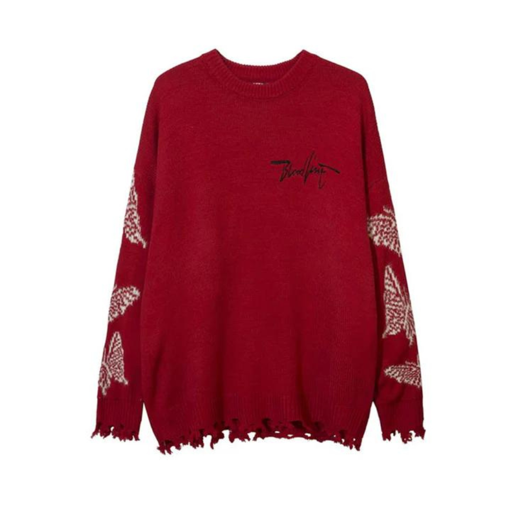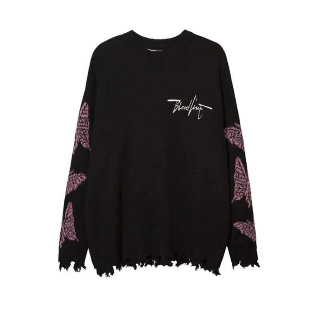 Take the risk and stand out in this striking butterfly letter jacquard sweater. Let the bold colors and eye-catching jacquard pattern soar to new heights of fashion! Dare to be different in this statement-making streetwear piece.