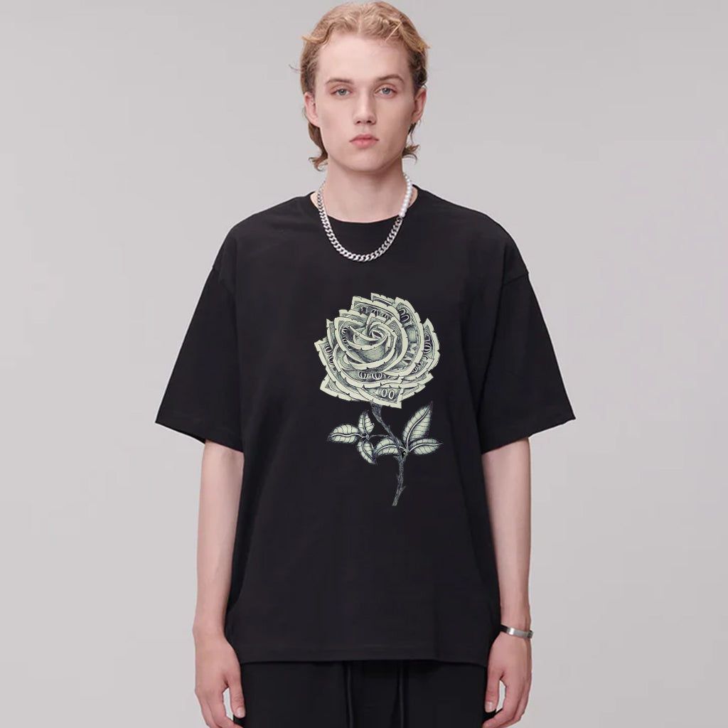 "High Street Casual Vintage Banknote Flowers" T-shirt