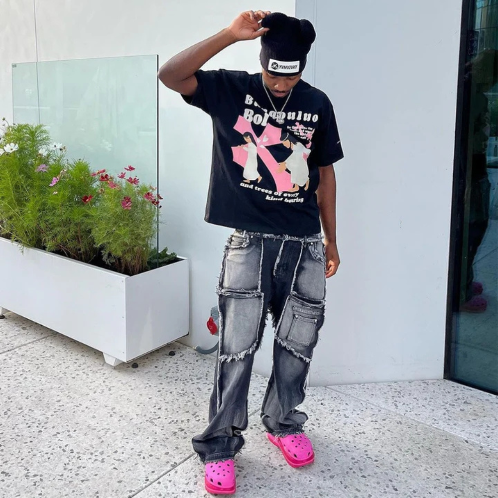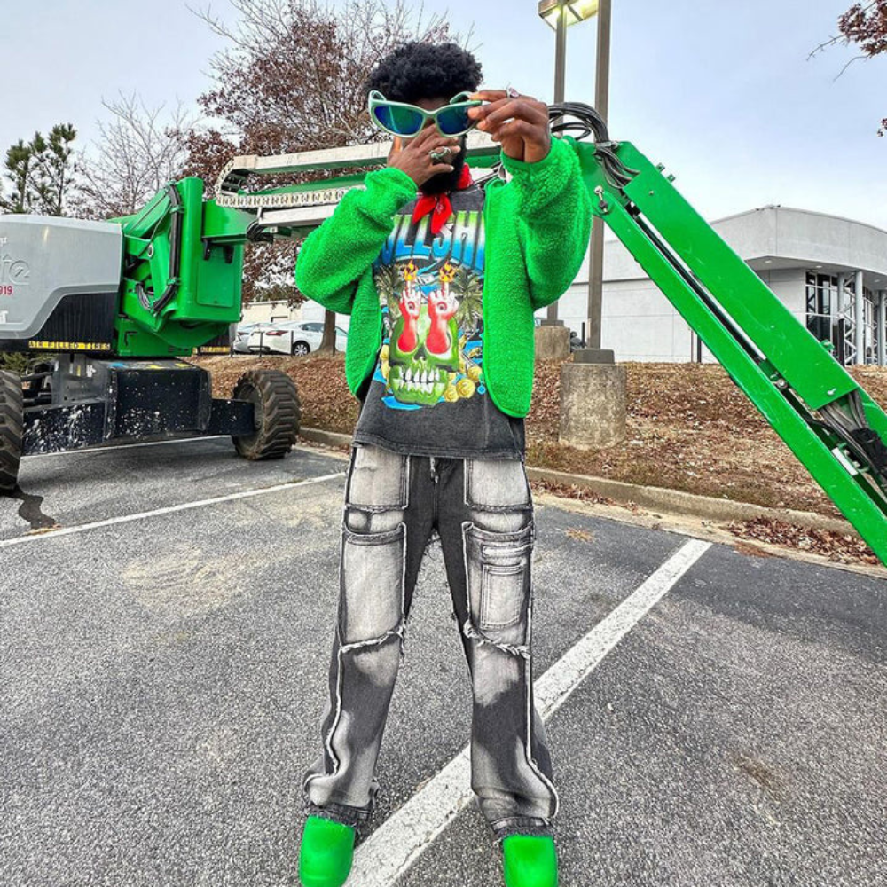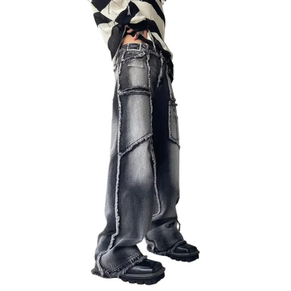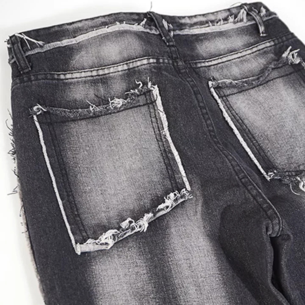 Upgrade your denim game with our High Street Frayed Gradient Jeans. These jeans feature a unique gradient design, fading from a dark wash at the top to a lighter wash at the bottom. The frayed hem adds a touch of edginess to the classic skinny jean silhouette.