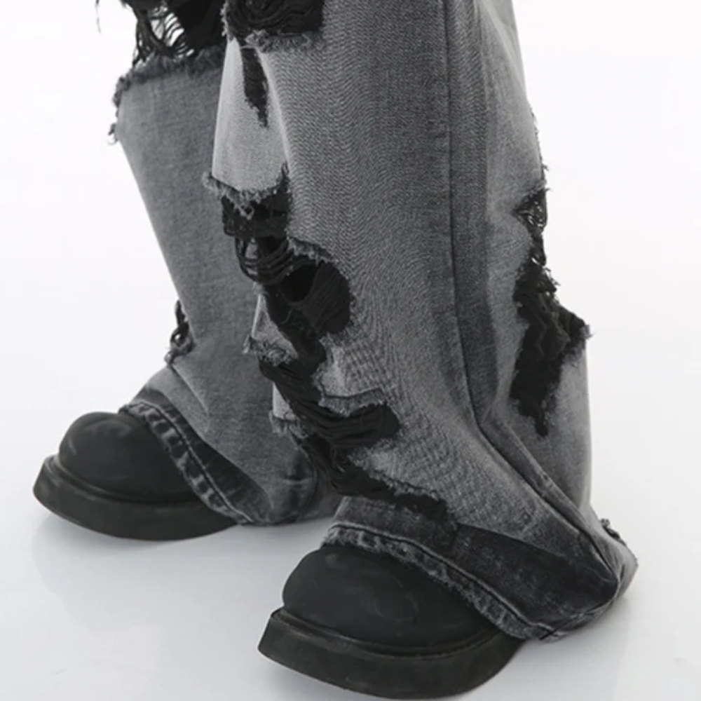 Get ready to elevate your street style game with our latest innovation - the High Street Irregular Ripped Baggy Jeans. These jeans are the perfect combination of edgy and comfortable, making them a must-have in your wardrobe.