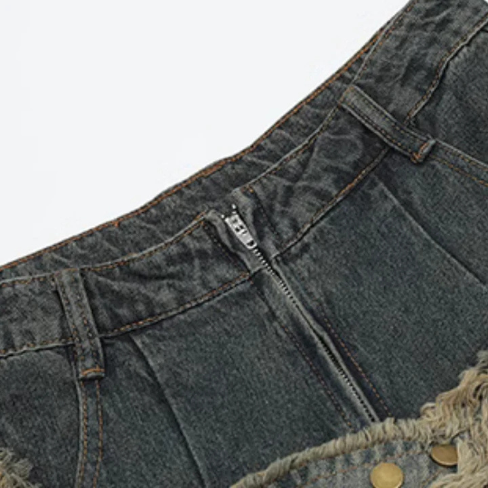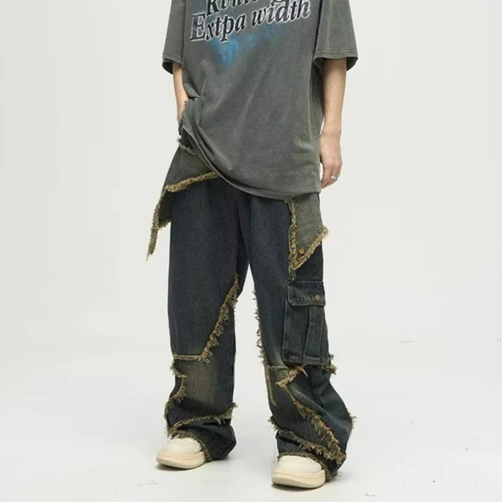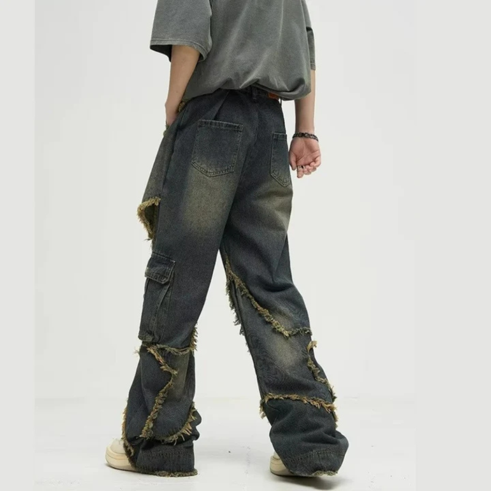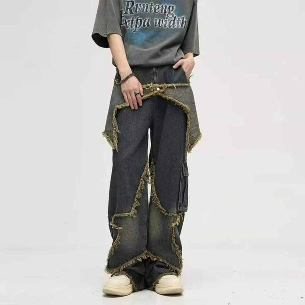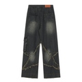"High Street Pentagram Patched Raw Edge" Jeans