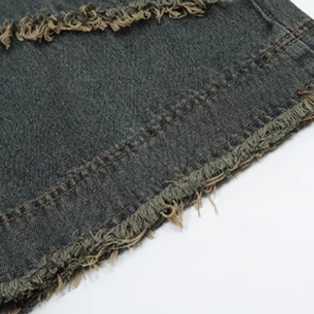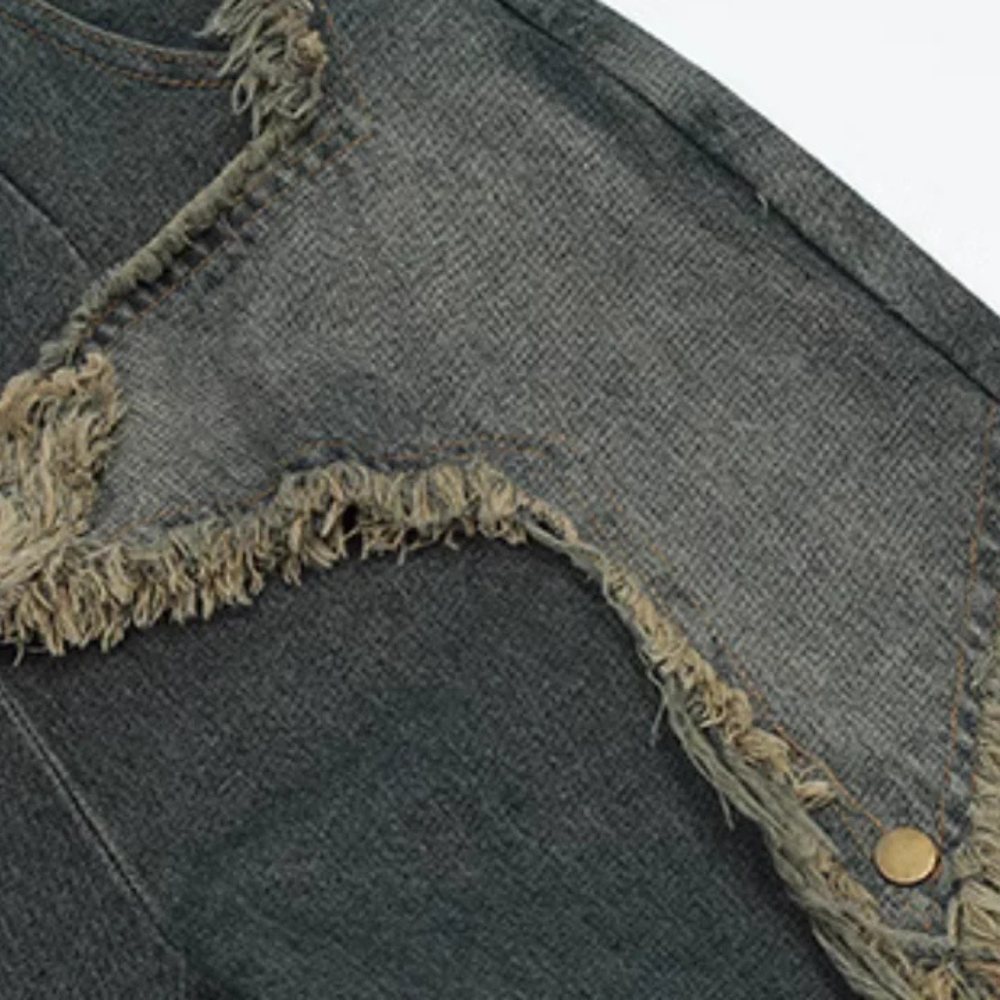 Upgrade your denim game with these edgy and unique jeans. Made from high-quality denim, these jeans feature a raw edge hem and a pentagram patch on the back pocket. The raw edge adds a touch of ruggedness to the overall look, while the pentagram patch adds a touch of rebellion.