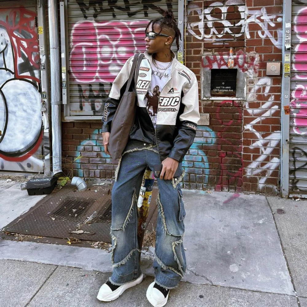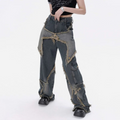 These jeans are perfect for those who want to make a statement with their fashion choices. The high street style gives off a cool and effortless vibe, making it a versatile piece that can be dressed up or down. The patchwork detail adds a touch of individuality, making these jeans stand out from the rest.