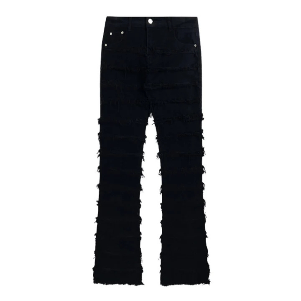 The raw edge detailing adds a touch of edginess to the classic design, making these jeans stand out from the rest. The solid color makes them versatile and easy to pair with any top or shoes. Whether you're dressing up for a night out or keeping it casual, these jeans will elevate your look.