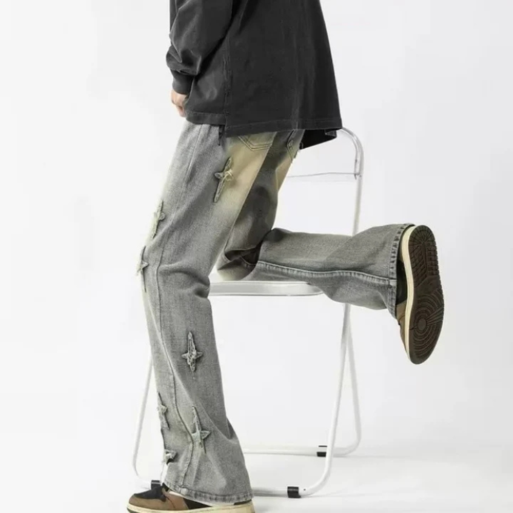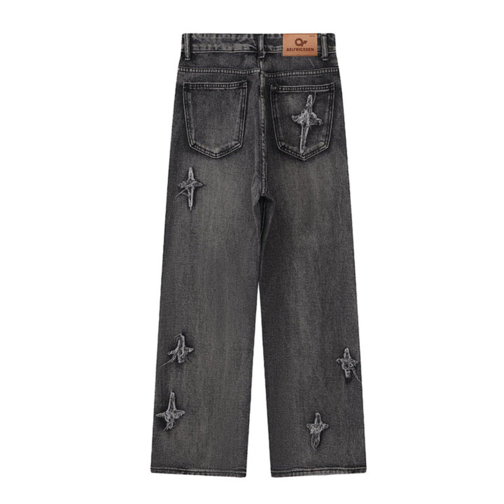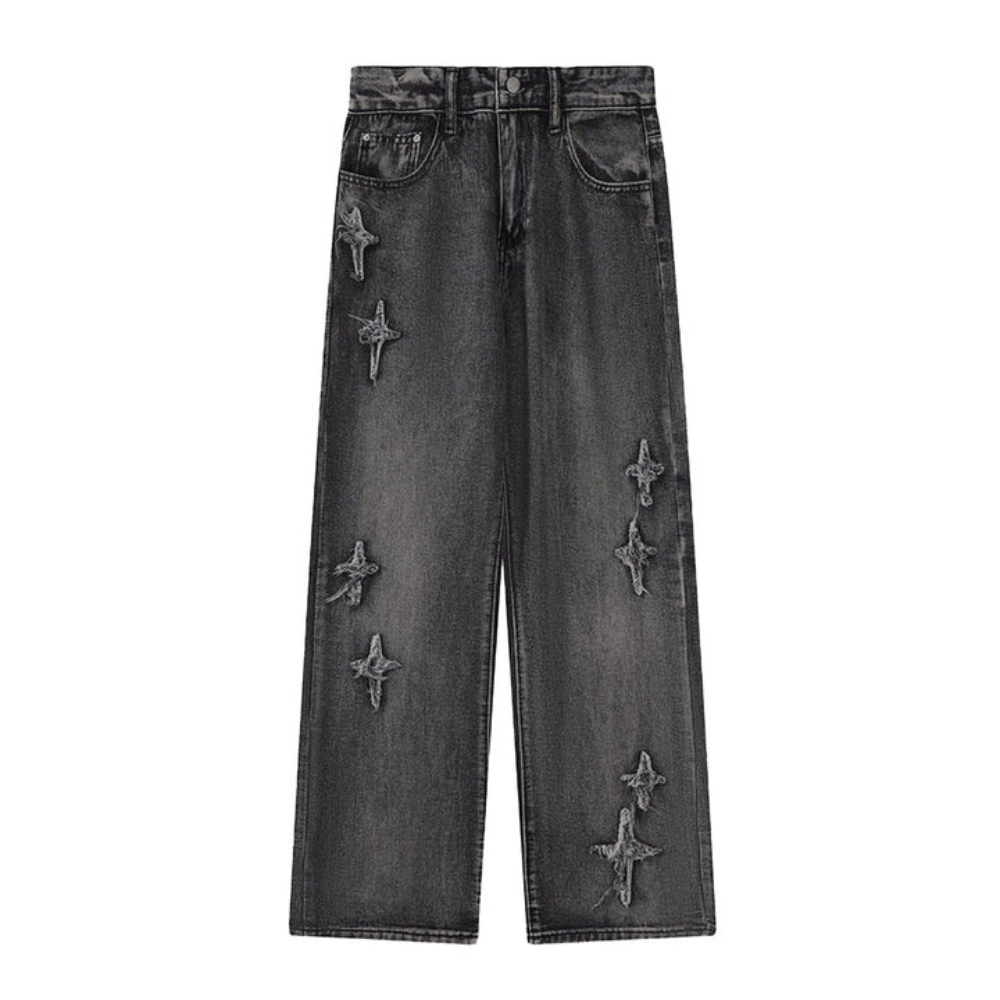 The "High Street Stars Embroidery Distressed" Jeans are a must-have addition to any fashion-forward wardrobe. These jeans feature a unique distressed design, giving them a trendy and edgy look. The star embroidery adds a touch of glamour and makes these jeans stand out from the rest. Made from high-quality materials, these jeans are durable and comfortable to wear. The high street style of these jeans makes them perfect for any casual occasion, whether it's a day out with friends or a night out on the town. These jeans are a true statement piece that will elevate any outfit.