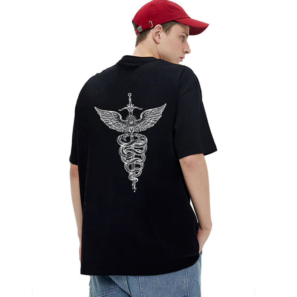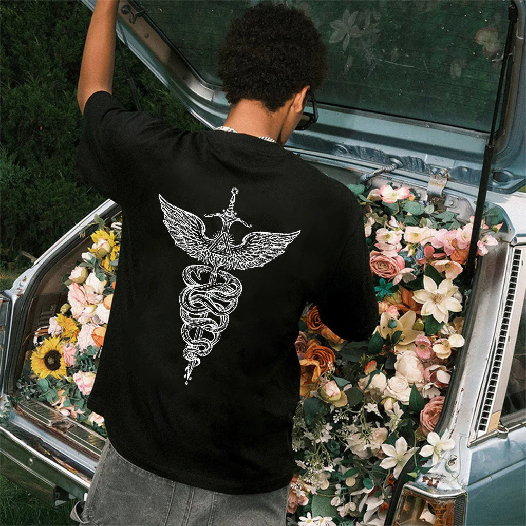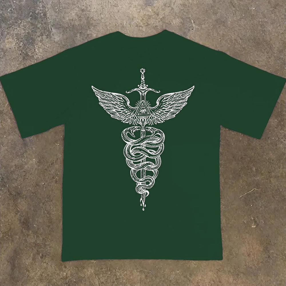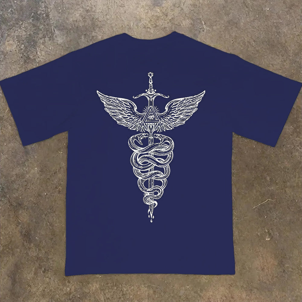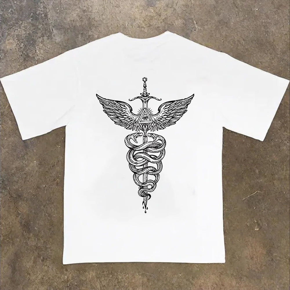 "Hip-hop cool angel snake sword pattern high street" T-shirt