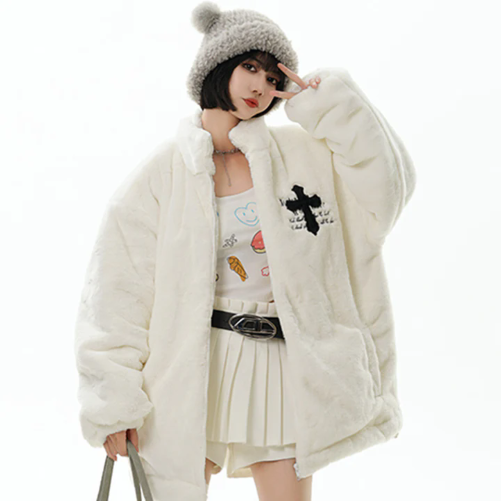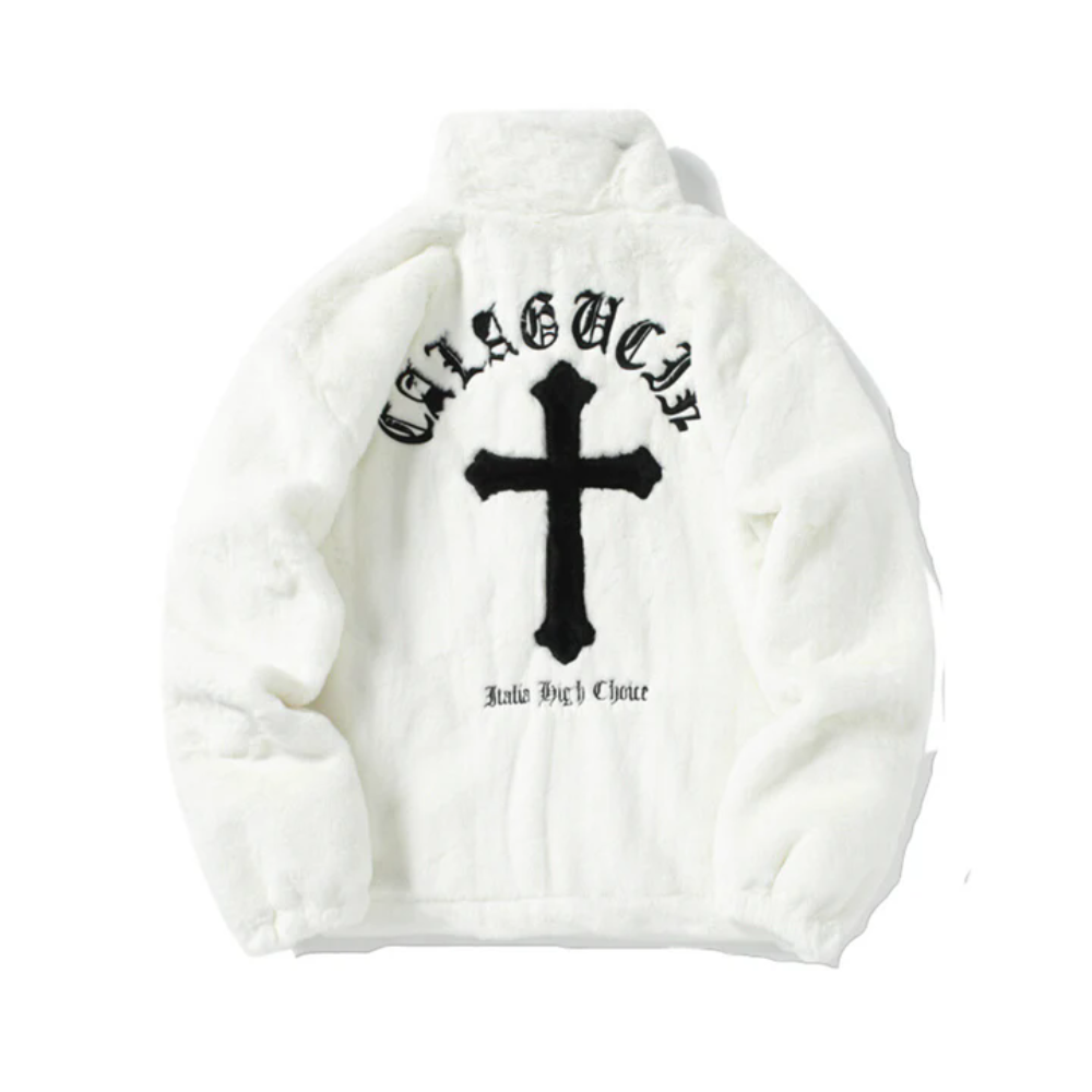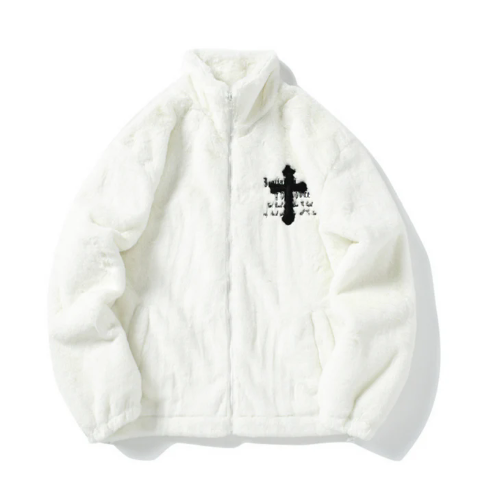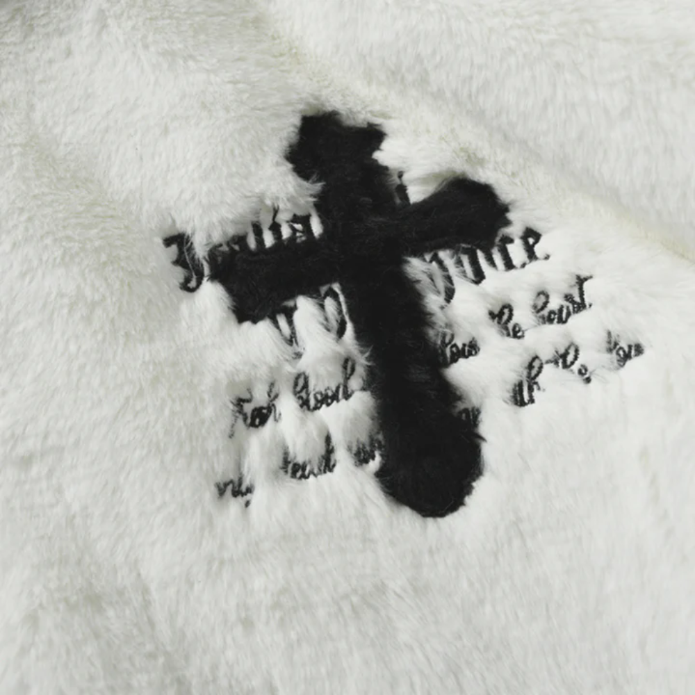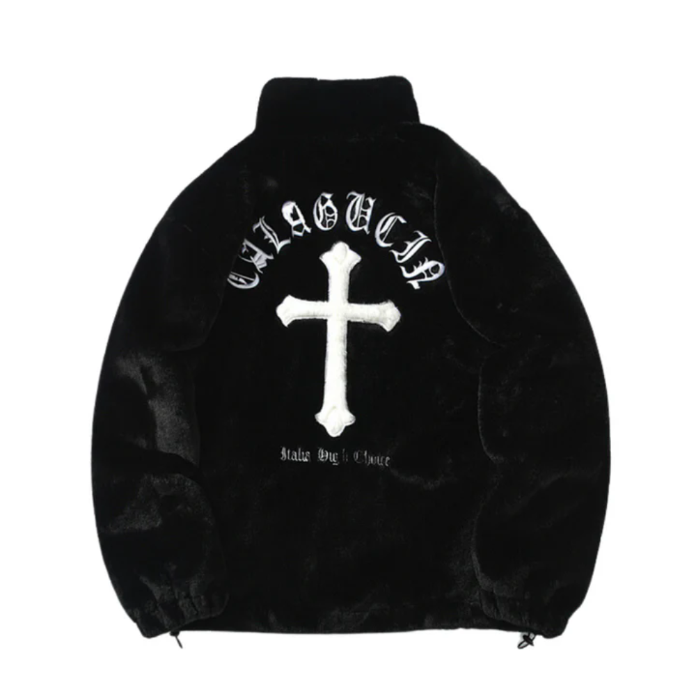 Hip Hop Cross Embroidery Fleece Coat