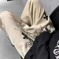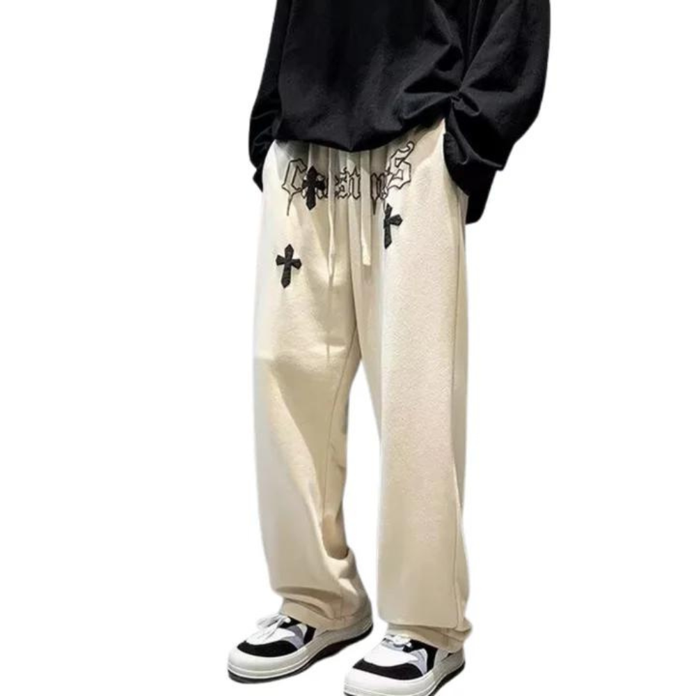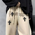 These sweatpants feature a relaxed fit and an elastic waistband with drawstrings, ensuring a comfortable and adjustable fit for all body types. The hip hop cross design on the front adds a bold and edgy element to the overall look. Perfect for lounging at home or hitting the streets, these sweatpants are versatile and can be dressed up or down.