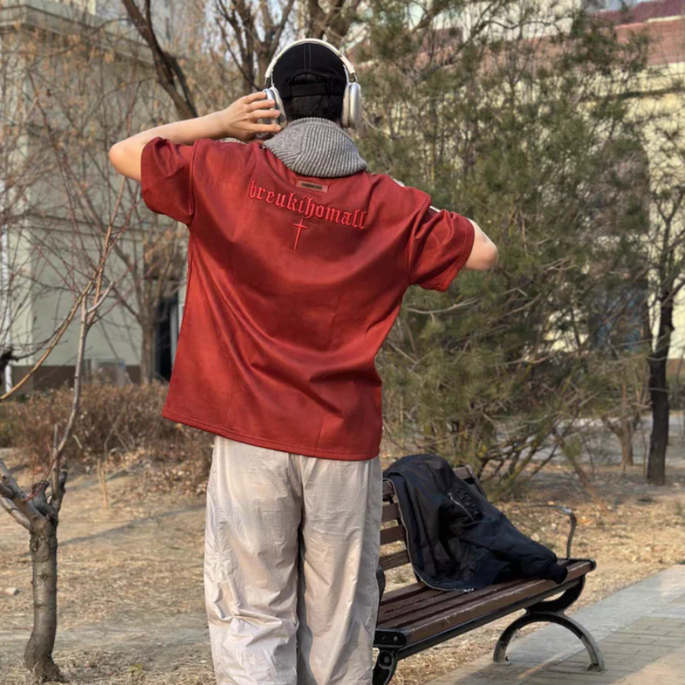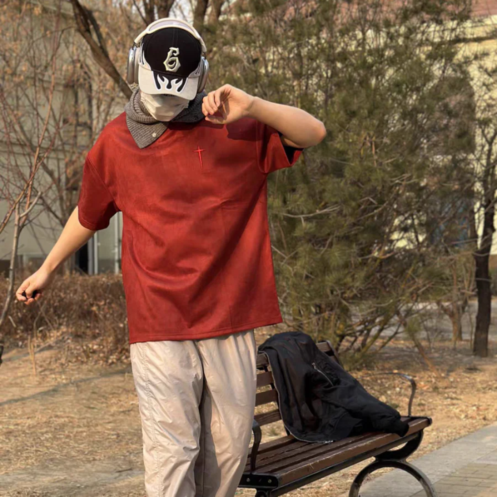 “Hip Hop Letter Embroidery Suede” T-shirt
