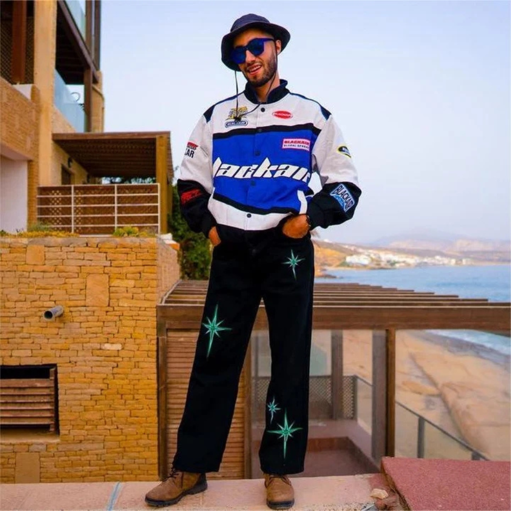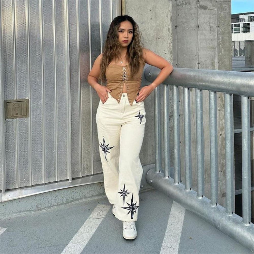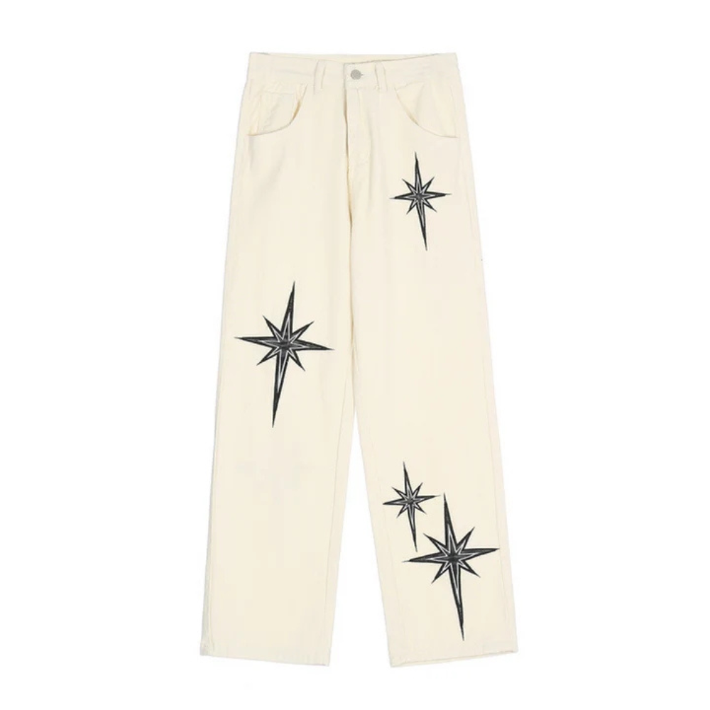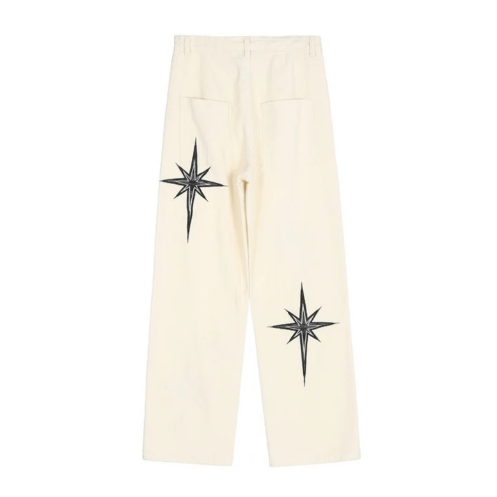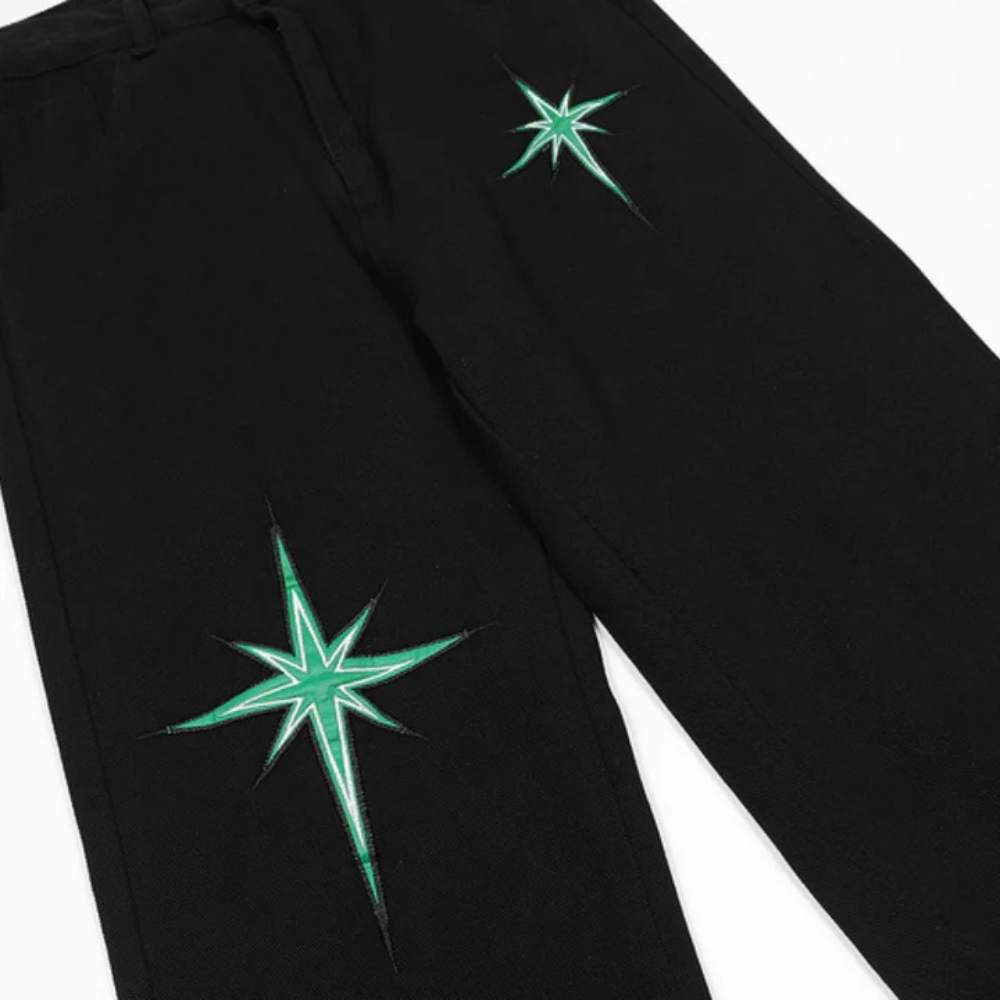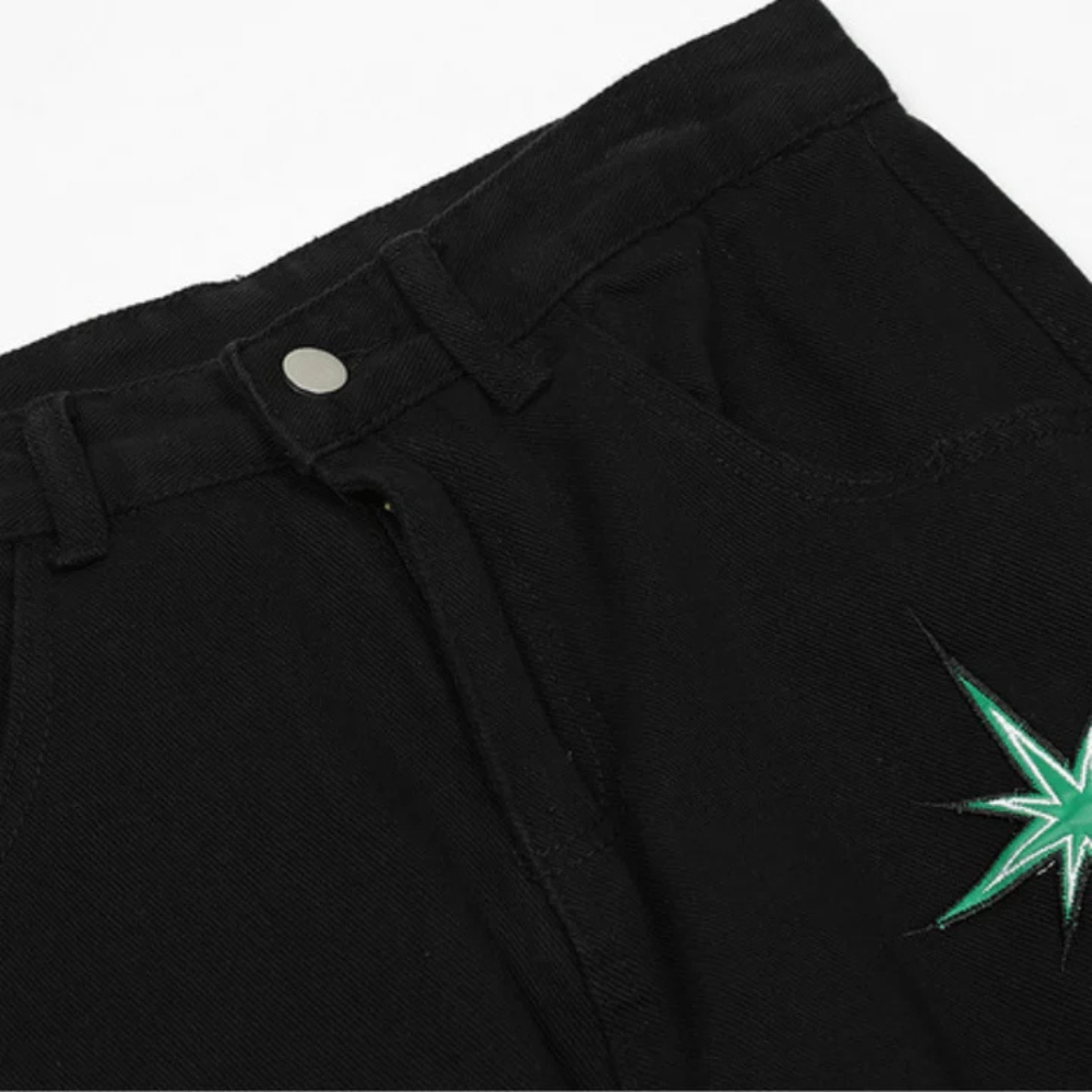 Introducing the ultimate statement piece for any fashion-forward individual - the Hip Hop Star Graphic Straight Jeans. These jeans are not your average denim, they are a bold and innovative take on the classic straight leg style. Made from high-quality materials, these jeans feature a unique graphic design that will make you stand out from the crowd.