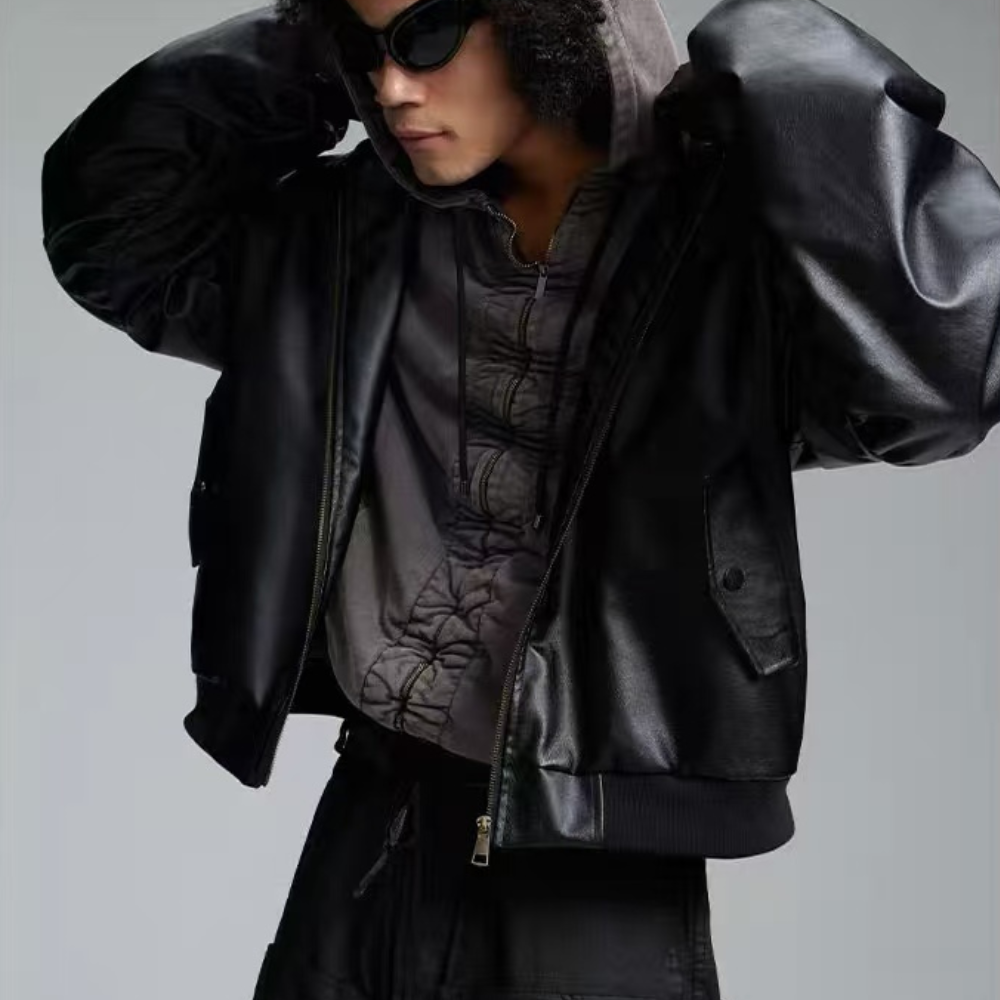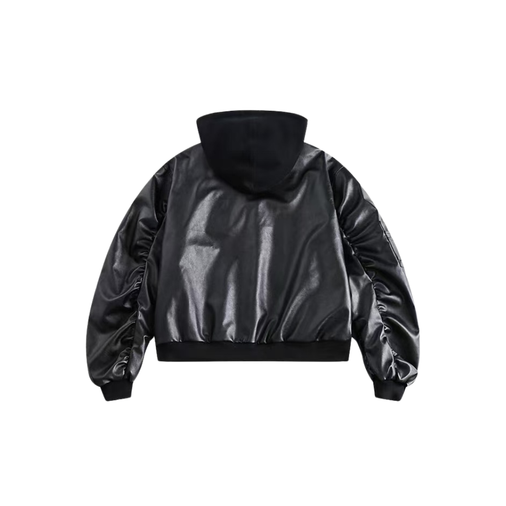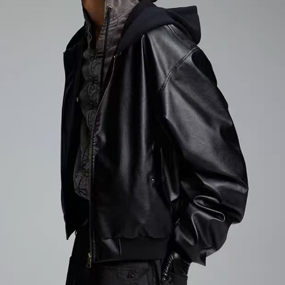 hooded leather jacket