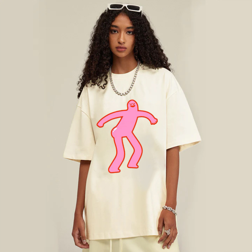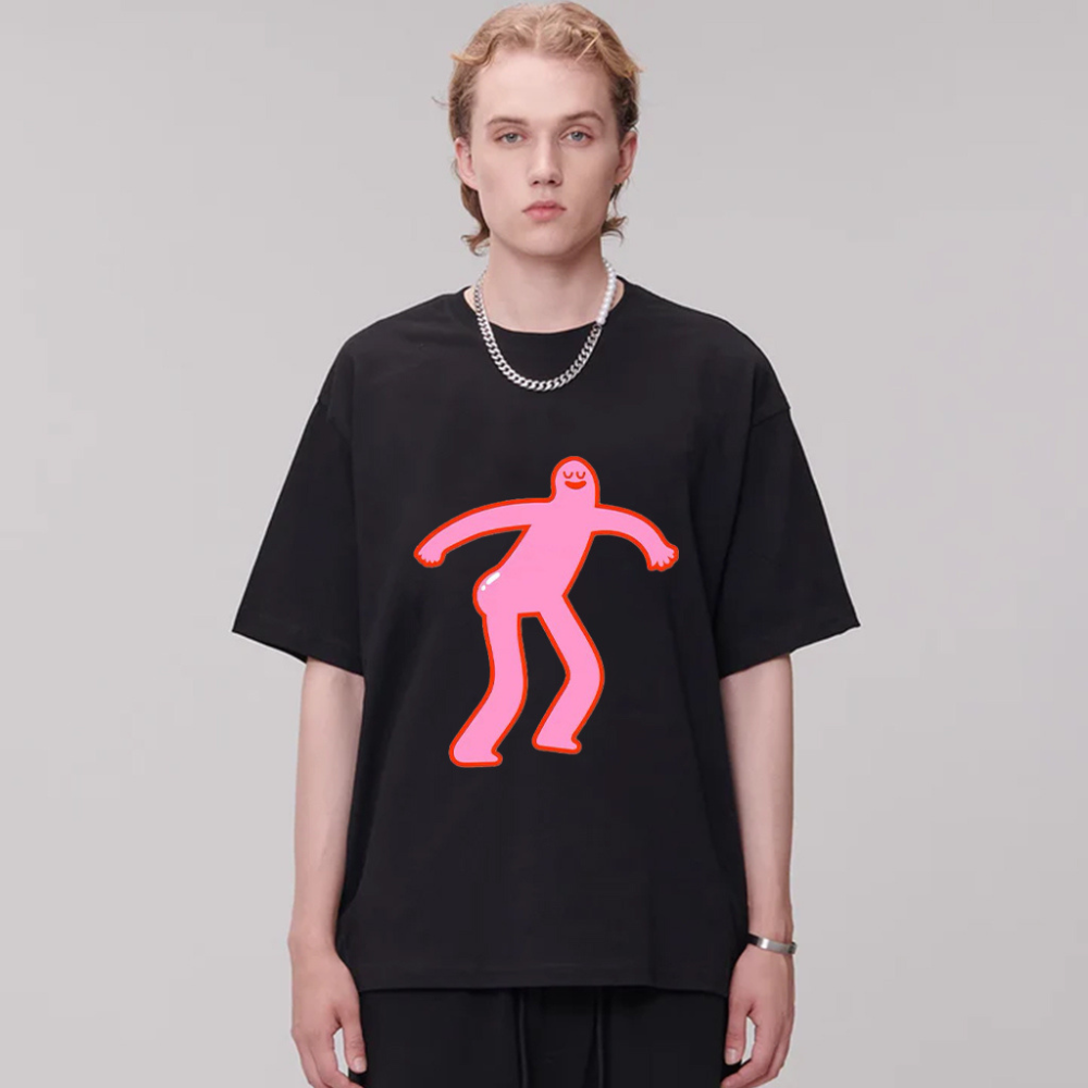 The "Dopamine" color matching adds a fun and playful element to the design, making it perfect for any casual street style look. Whether you're heading to a music festival, hanging out with friends, or just running errands, this T-shirt is the perfect choice for a cool and effortless outfit.