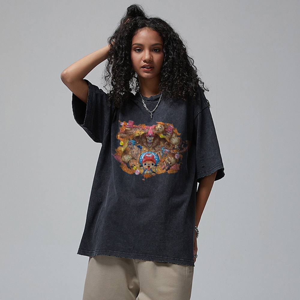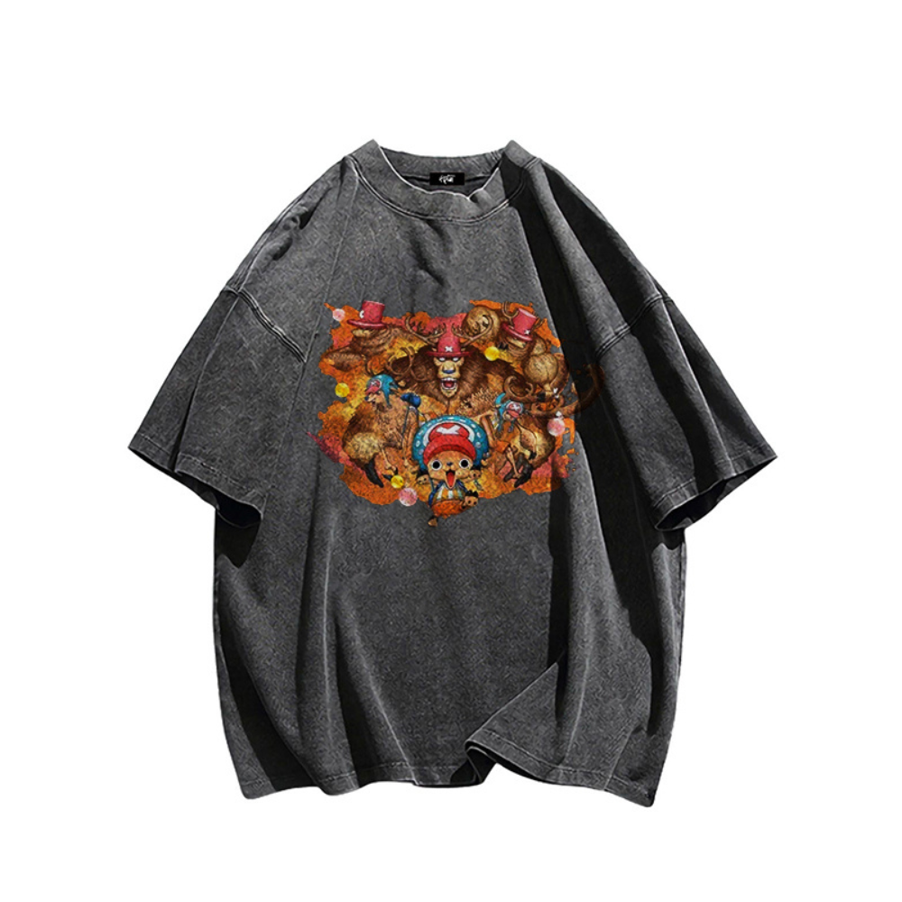 This T-shirt features a unique and eye-catching print of Chopper, a beloved character from the popular Japanese anime series. The design is bold and vibrant, showcasing Chopper in all his adorable and quirky glory. Made from high-quality materials, this T-shirt is comfortable to wear and perfect for any anime fan.