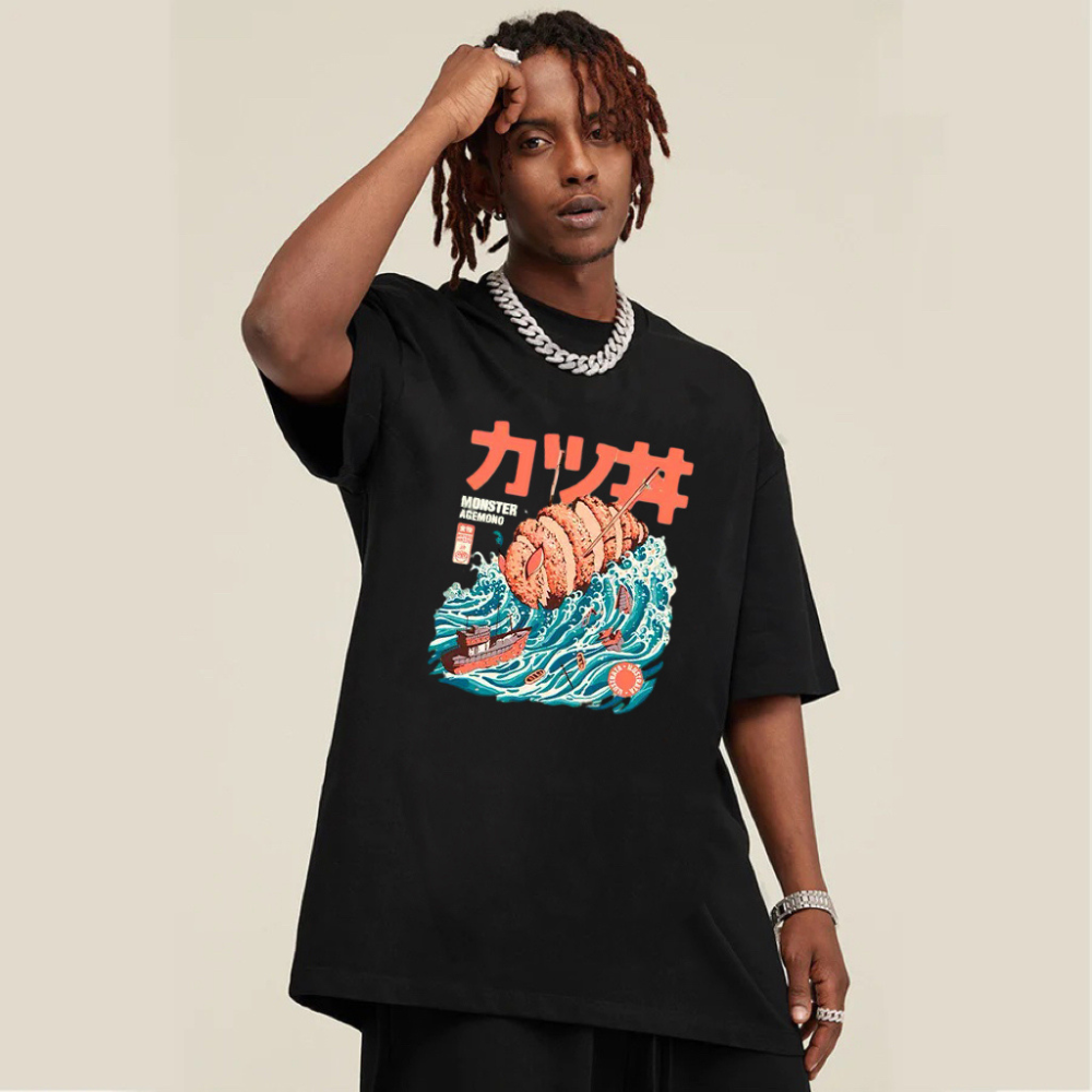 Get ready to ride the waves in style with our unique and eye-catching t-shirt. Inspired by the iconic "Great Wave off Kanagawa" painting, this t-shirt features a bold and colorful design that will make you stand out from the crowd.