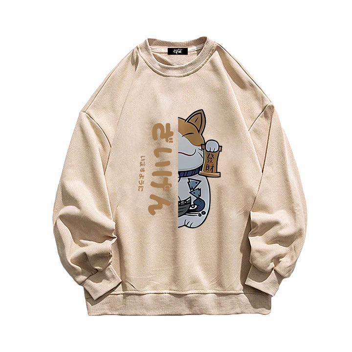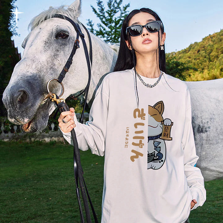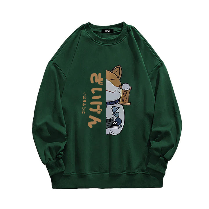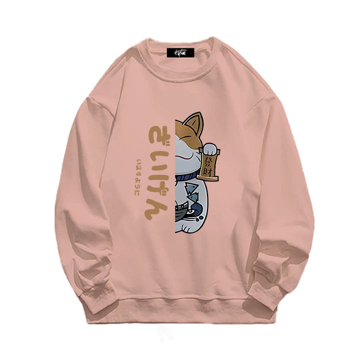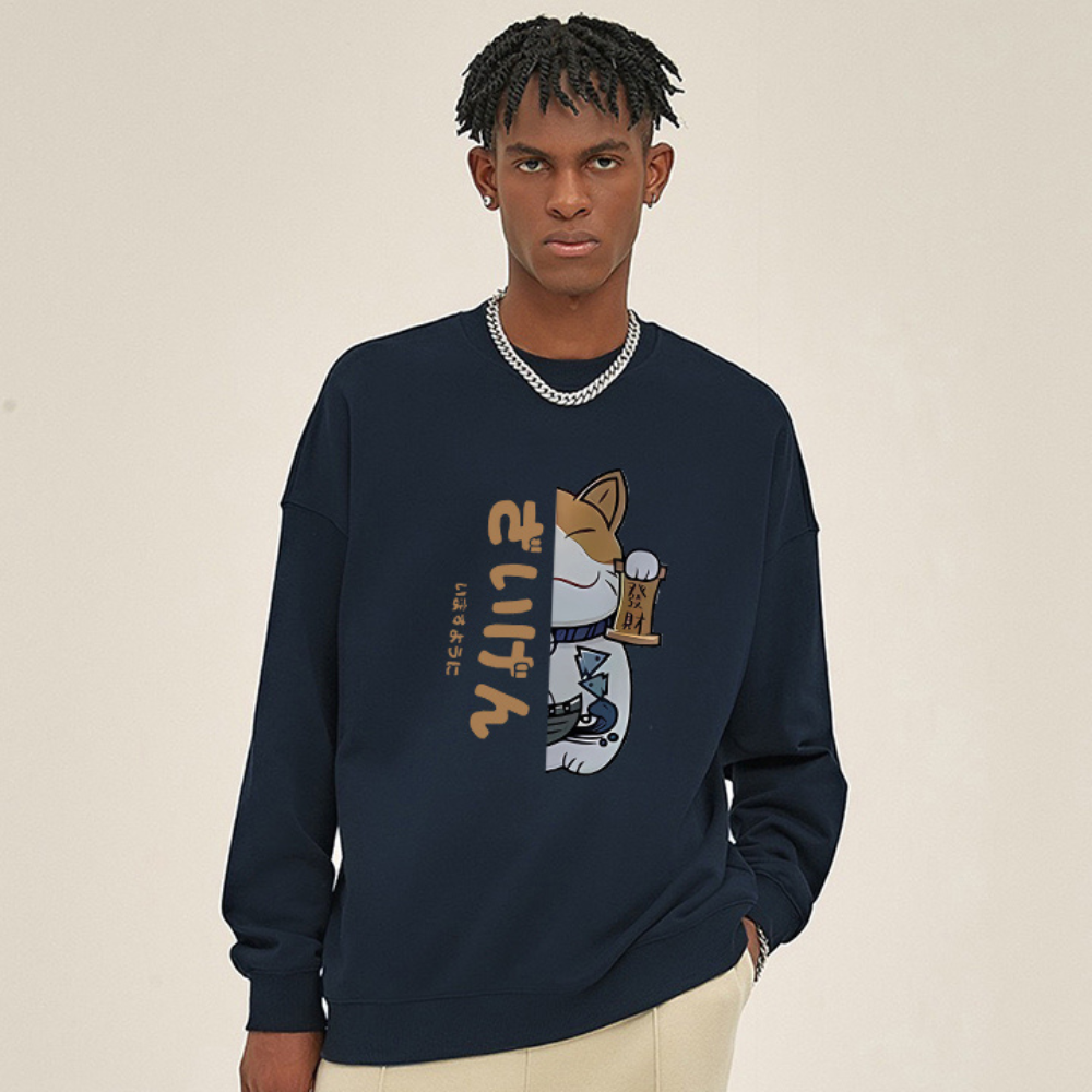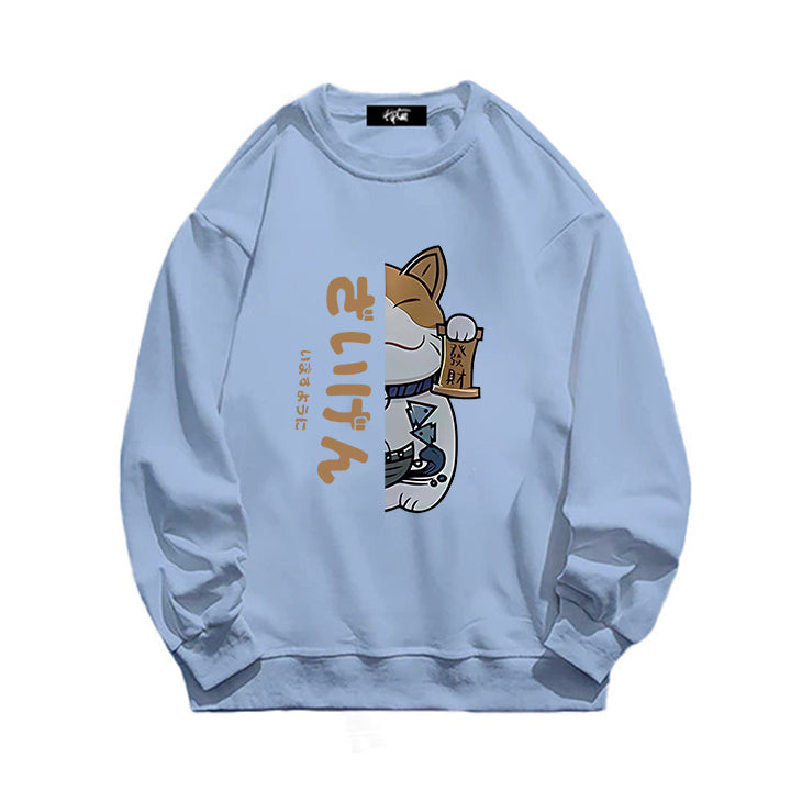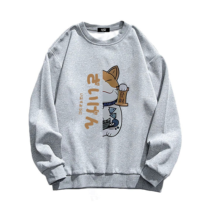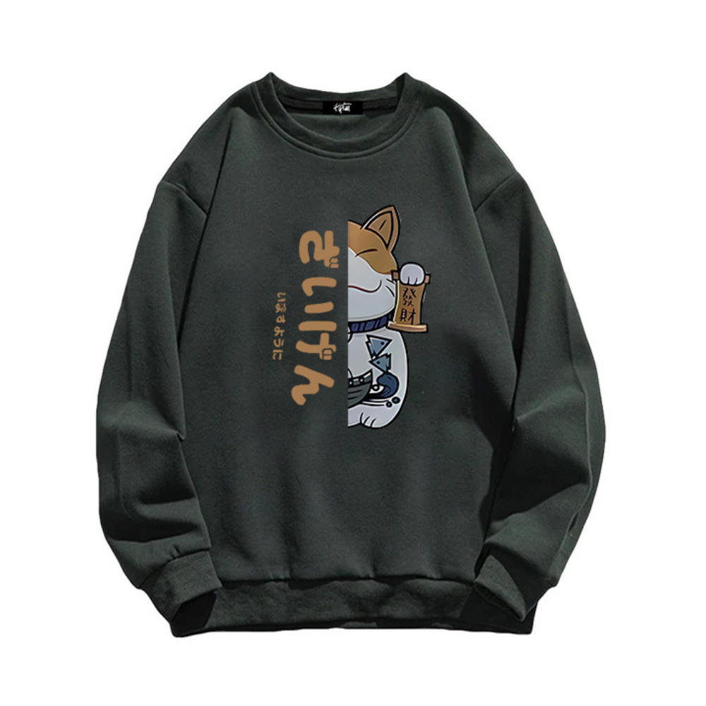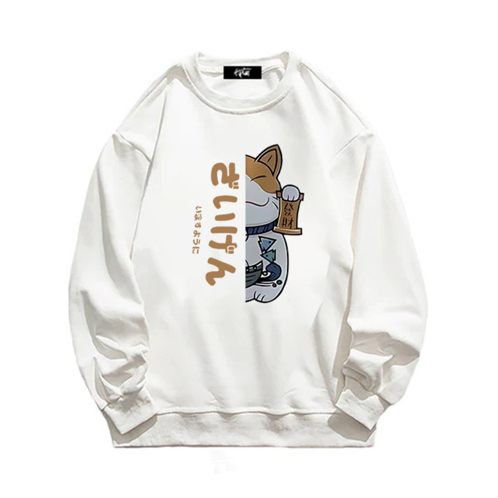 Add a touch of Japanese culture to your wardrobe with our Japanese Lucky Cat sweatshirt. This unique sweatshirt features a cute and iconic lucky cat design, known as Maneki Neko in Japan, which is believed to bring good luck and fortune to its owner.